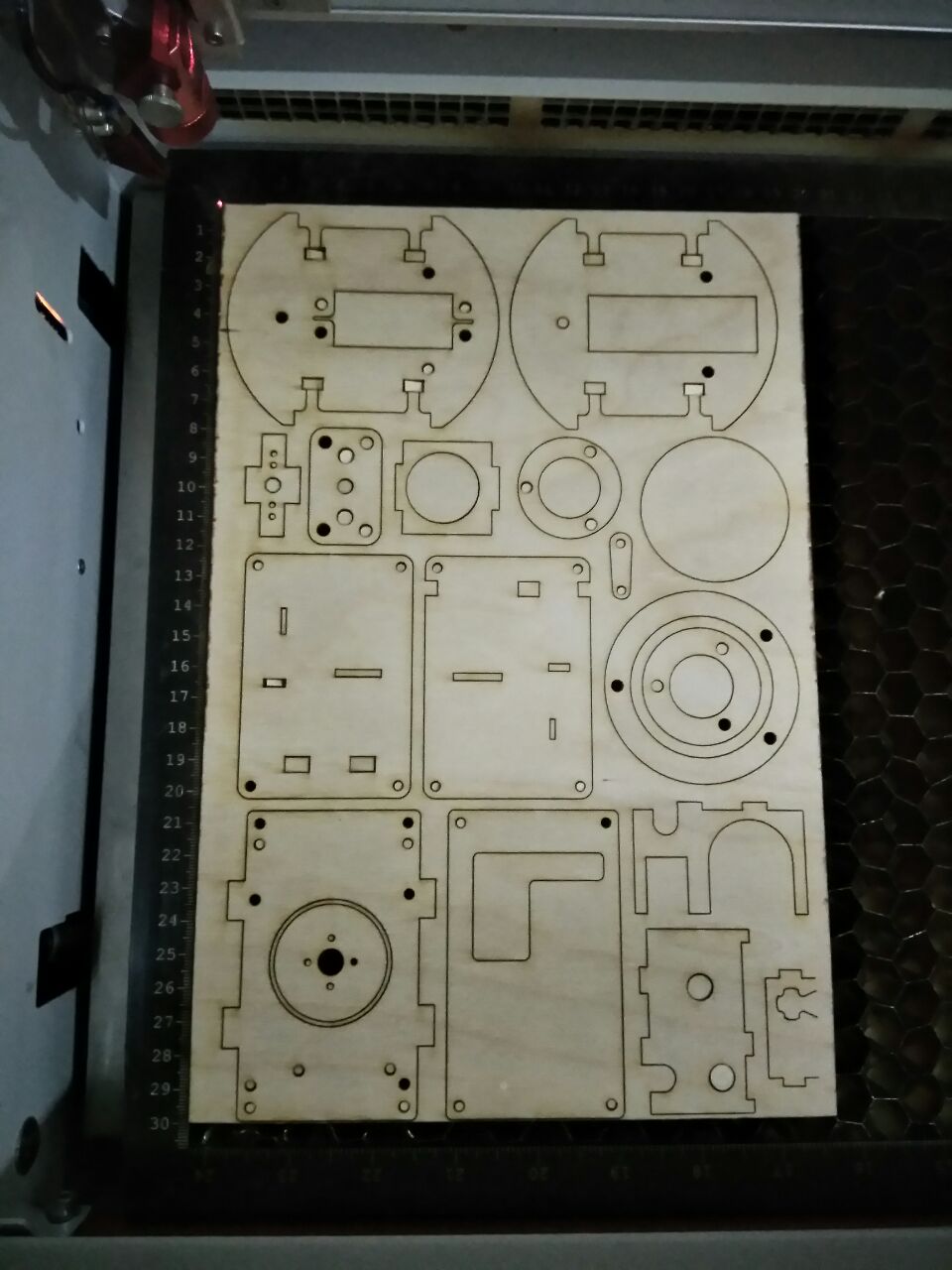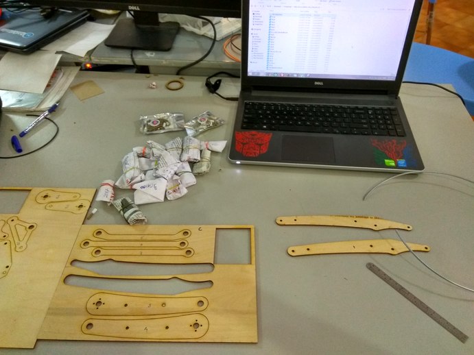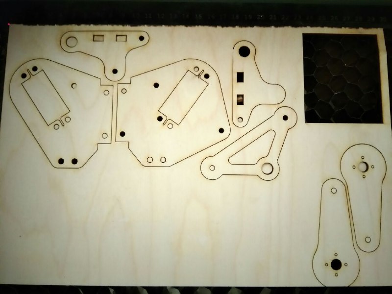 Since we will be designing and fabricating most of the parts for the arm we decided to make a prototype of the arm on scrap pieces of wood to make sure all the dimensions are correct and figure out how the joints are going to come together and what all parts do we need to make.We laser cut all the parts for the arm in scrap pieces of wood.