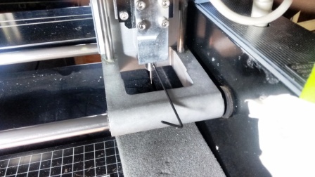 We need to set the origin so that the machine knows from where it should start the operation. This is also vital in order to select the desired area on the copper board on which to mill the PCB. First we need to select the ‘move to xmin, ymin’ option. This would move the milling head to the Zero (20,20 by default). Then by changing the values we could locate the orgin to the desired area. In my assignment, I shifted the orgin to (2,79), so as to mill on the available space at the top left corner. Then move the milling head down by using the ‘Tool-Down’ button on the front panel, till we reach about 0.5 cms above the milling surface. Now with the Allen key, gently loosen the hex-nut holding the bit such that the bit drops to the milling surface. Then fasten the nut. Now the milling bit should be resting just on the top of the milling surface, as seen in the image.