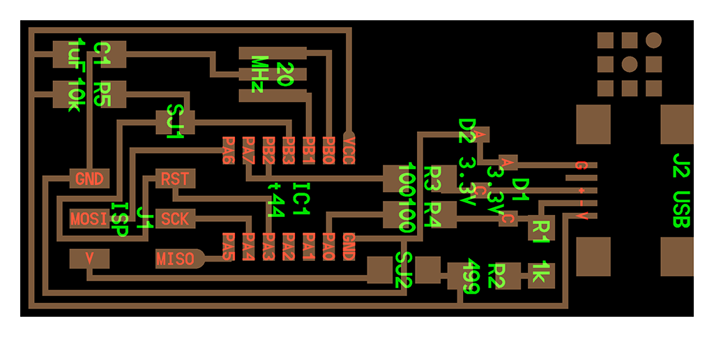 Assignment 4: Make an in-circuit programmer based on the AtTiny44 by milling the PCB.