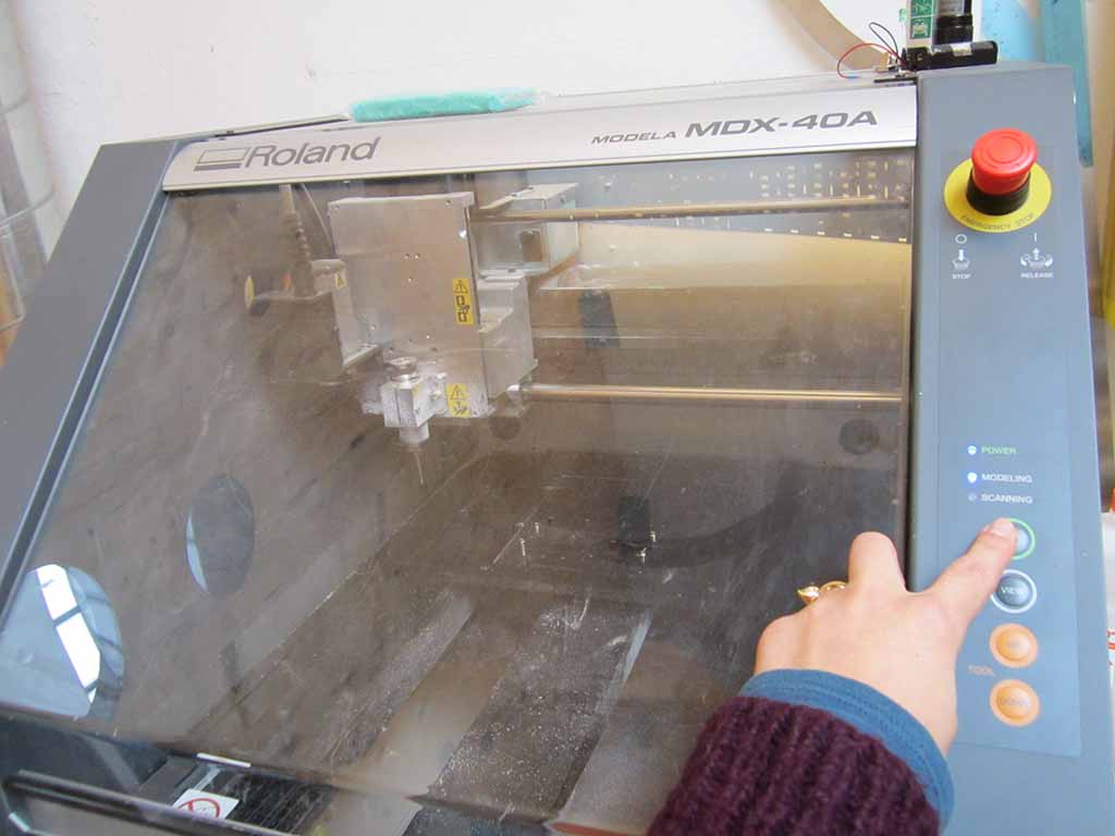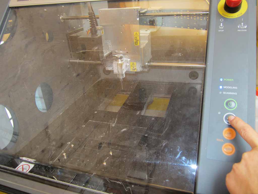 First I set the zero of the Z axis moving it carefully (really carefully!): during this phase the endmill should descend with 0.1 mm steps and stopped when it brush against the copper layer (Fig. 8).