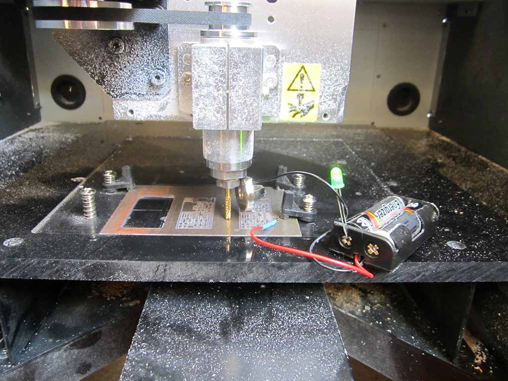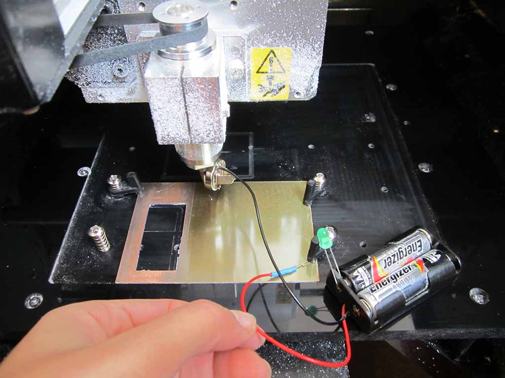 During this phase you can use a simple led-based circuit: when the tool touches the copper, the circuit is closed and the led lights on (Fig. 9).