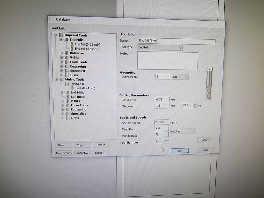 The first cut went fine, so I repeated the process on fabmodules for the cutout image; this time I set Outline cut to 1/32, Cut depth to 0.75 mm, Stock thickness to 1.5 mm and Tool diameter to 1.5 mm, and only 1 for the offset.