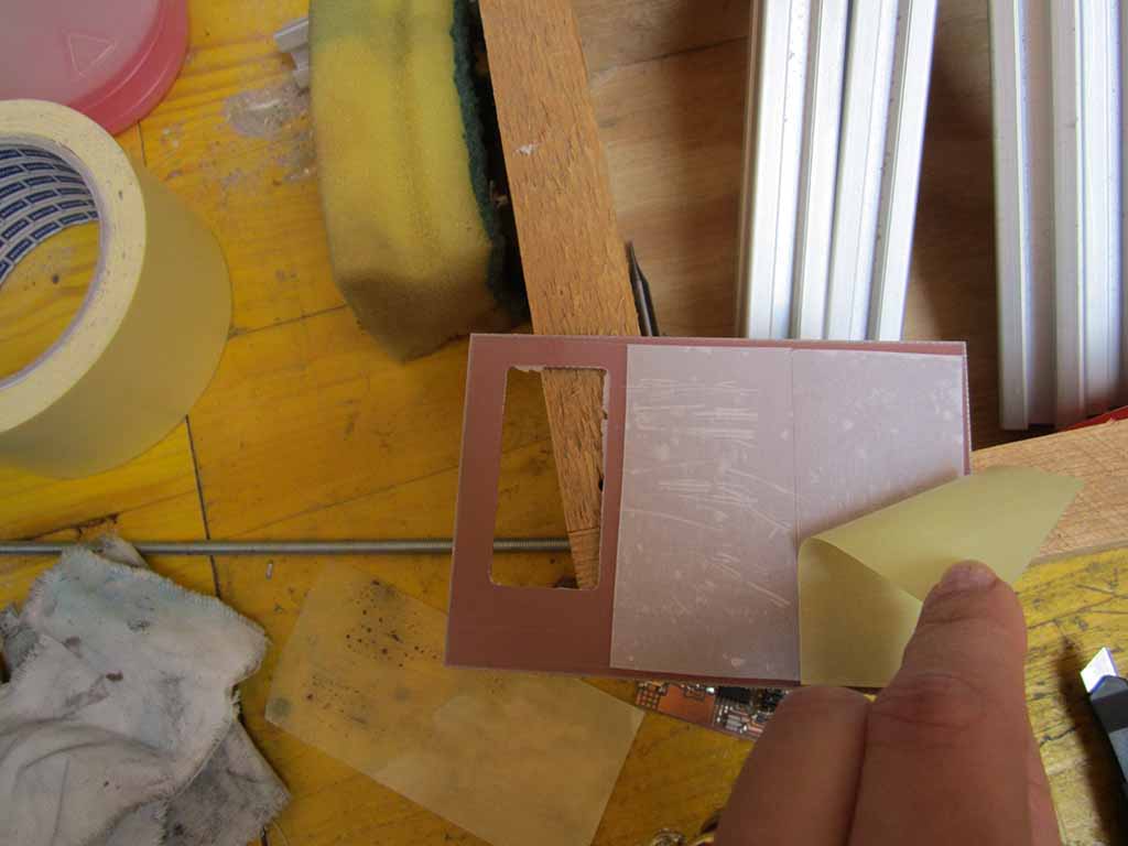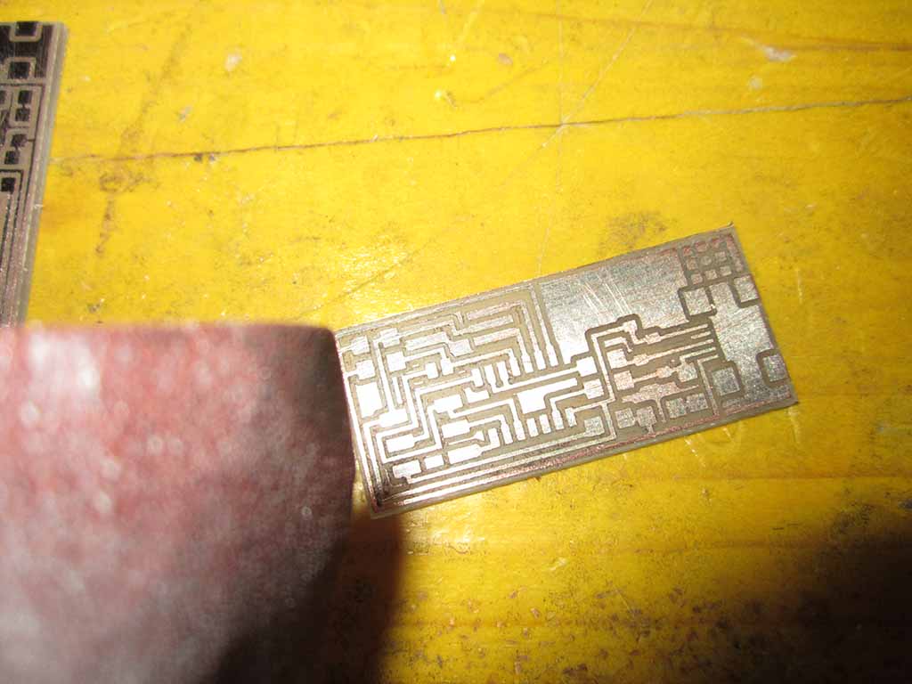 The pcb came out good and flawless. I rubbed the surface with a piece of sandpaper to clean it and remove the small and unwanted copper pieces remained on the PCB (Fig. 19).