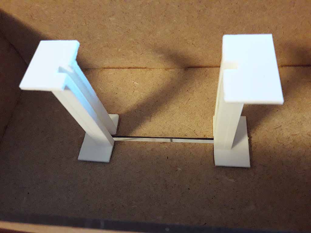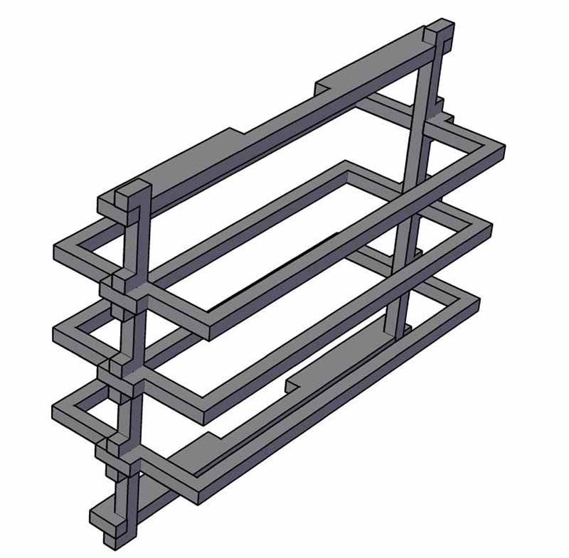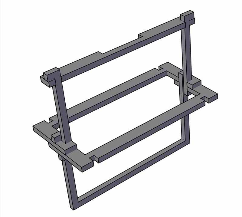 The next day the solution was clear. I designed the final version (Fig. 8) of the Case very quickly: two vertical supports jointed into horizontal cave bases around the Box. I thought to design two types of vertical supports: for three and for four joints.