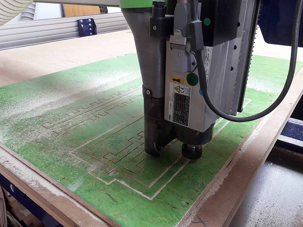 At Opendot I prepared the file for CNC machine using VCarve and then I moved to the Shopbot. I used the 4 mm tool and I cut the OSB material (Fig. 9 and 10). For details on using VCarve and ShopBot, you can see my Assignment 7 (Computer-Controlled Machining).