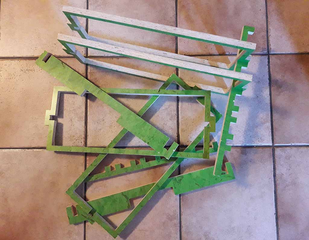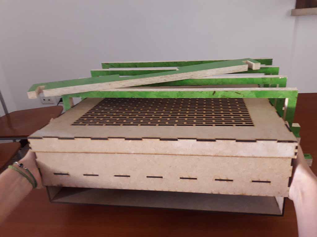 The first version (Fig. 7) was not a success. The four pieces had to be mounted around the box, but then they could not be assembled to form the table. I tried to make a prototype with the 3D printer and I realized that assembly was complicated and the pieces did not stay together easily. After an afternoon of drawings I decided to sleep on.