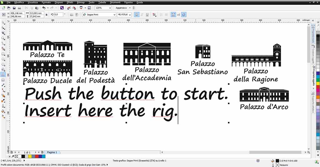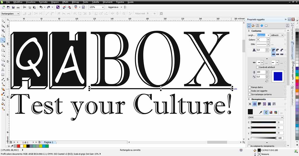 The vinyl cutter part is that I prefer. So I designed on CorelDraw the logo "QA BOX" (Fig. 24) for the front of the Box, some texts and the icons of the single palaces (Fig. 25) for the Cards.