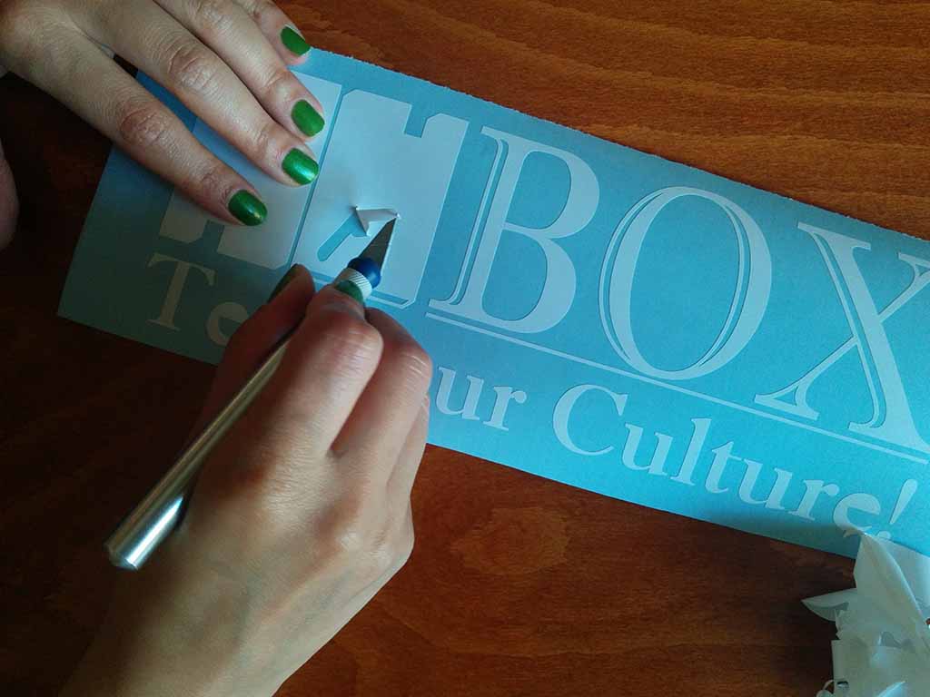 I used a little Roland vinyl cutter called STIKA. I saved the .bmp and .eps format to have more precision.I imported the file on Cut Studio, extracted the contour automatically, inserted the vinyl sheet (Fig. 26) and sent the cut. I weeded the excess vinyl (Fig. 27 and 28) using a cutter. I used a piece of transfer paper to move the drawing to the cover (Fig. 29), the Cards (Fig. 30) and the other pieces of the Box. For more details about vinyl cutter, you can see my Assignment 3 (Computer-Controlled Cutting).