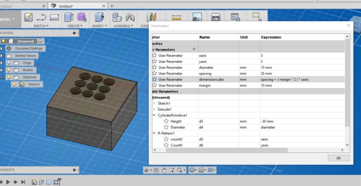 There is also a CAM integrated in the software that I will touch upon later. I am covering tutorials with Fusion360 to complete my understanding of it. What I am really after is something called "user parameters" in Fusion360, to design objects using parameters which can be modified later on :
