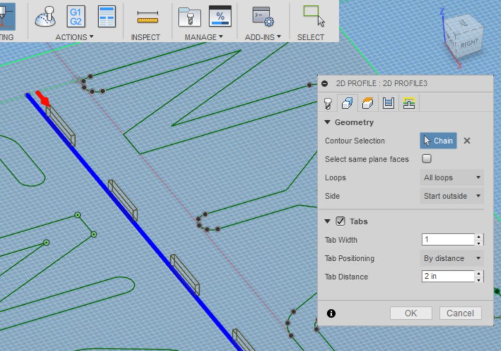 Back to modeling, I have to face a technical dilemna. Now the folding lines are curved rather than straight lines, I cannot use the metal sheet tool in Fusion360 anymore. I will have to draw it as a 2d sketch and get the angles and dimension right. I also need to ensure the folding lines are cut as dashed, not fully. Looking into it, there is an option to add tabs to a laser cut line in the cad mode of fusion360:
