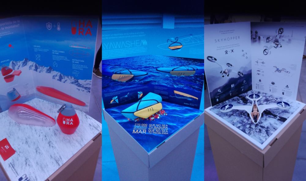 On my way back home I bump into a student exhibition about design for outdoor sport. Most students designed hi-tech objects answering the needs of city-dwellers in need of some fresh air. A student however, designed an object to solve a pollution problem, designing a container attached to the front of canoe, collecting plastic bottles as users gets her/his/their fix of adrenaline :