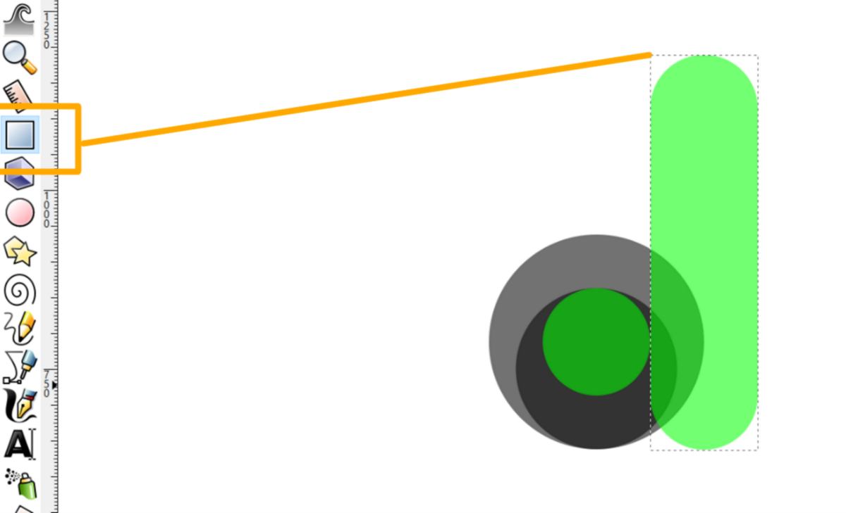 I then create a rectangle which will represent the right side of the letter and align it with the right-hand side of the smaller circle. I then chamfer the corner using the rectangle tool and convert the rectangle into a path.