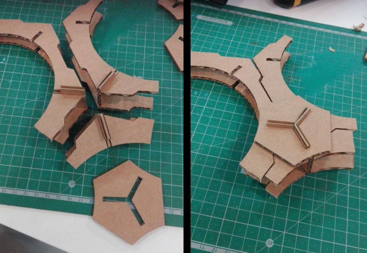 As a side-note, I want to mention that cardboard has a structural resistance that makes it used for other things than prototyping. For instance, Pauline is buidling a surf board which uses cardboard as a structural component to hold the outer layers of fiberglass into place: