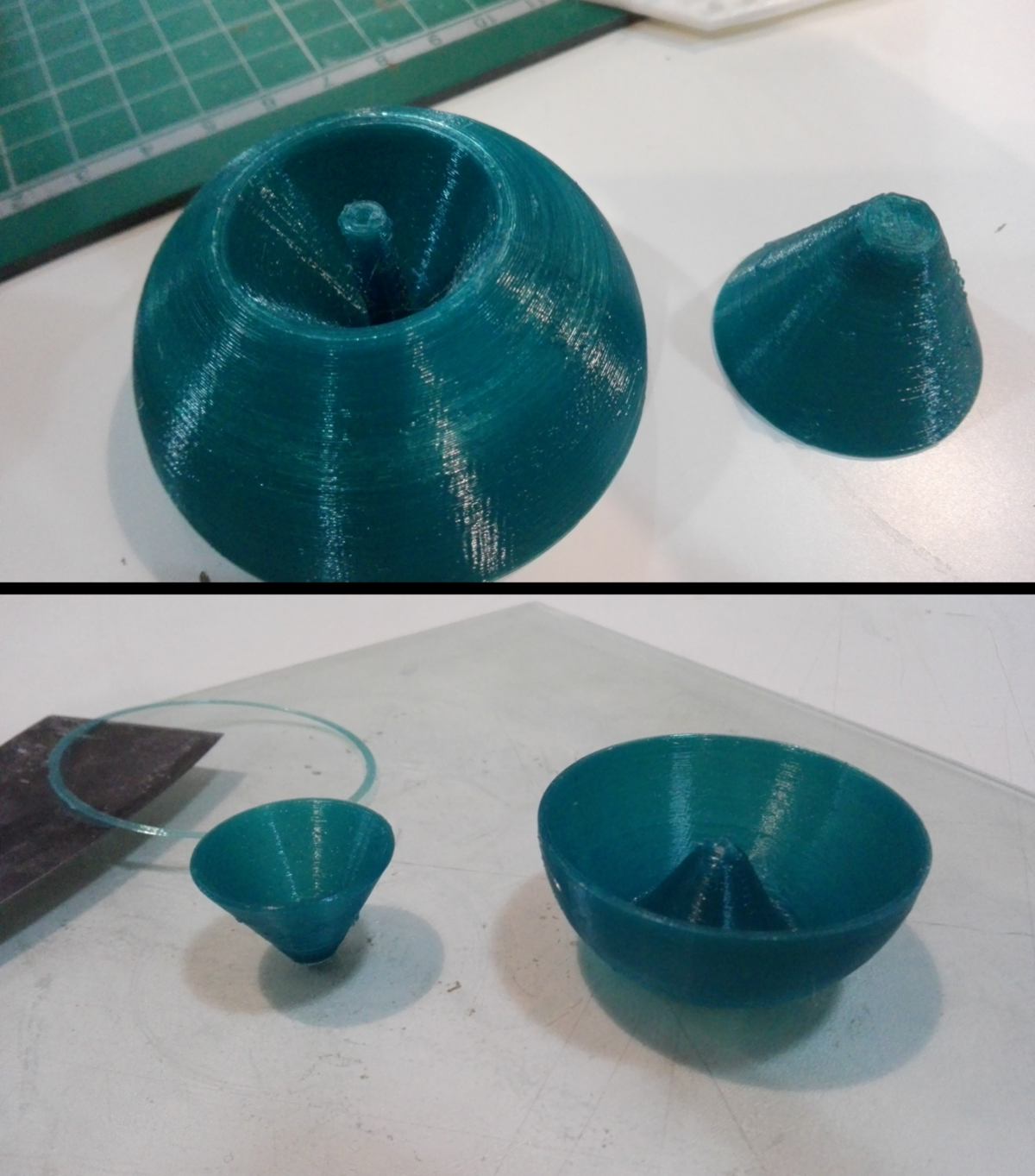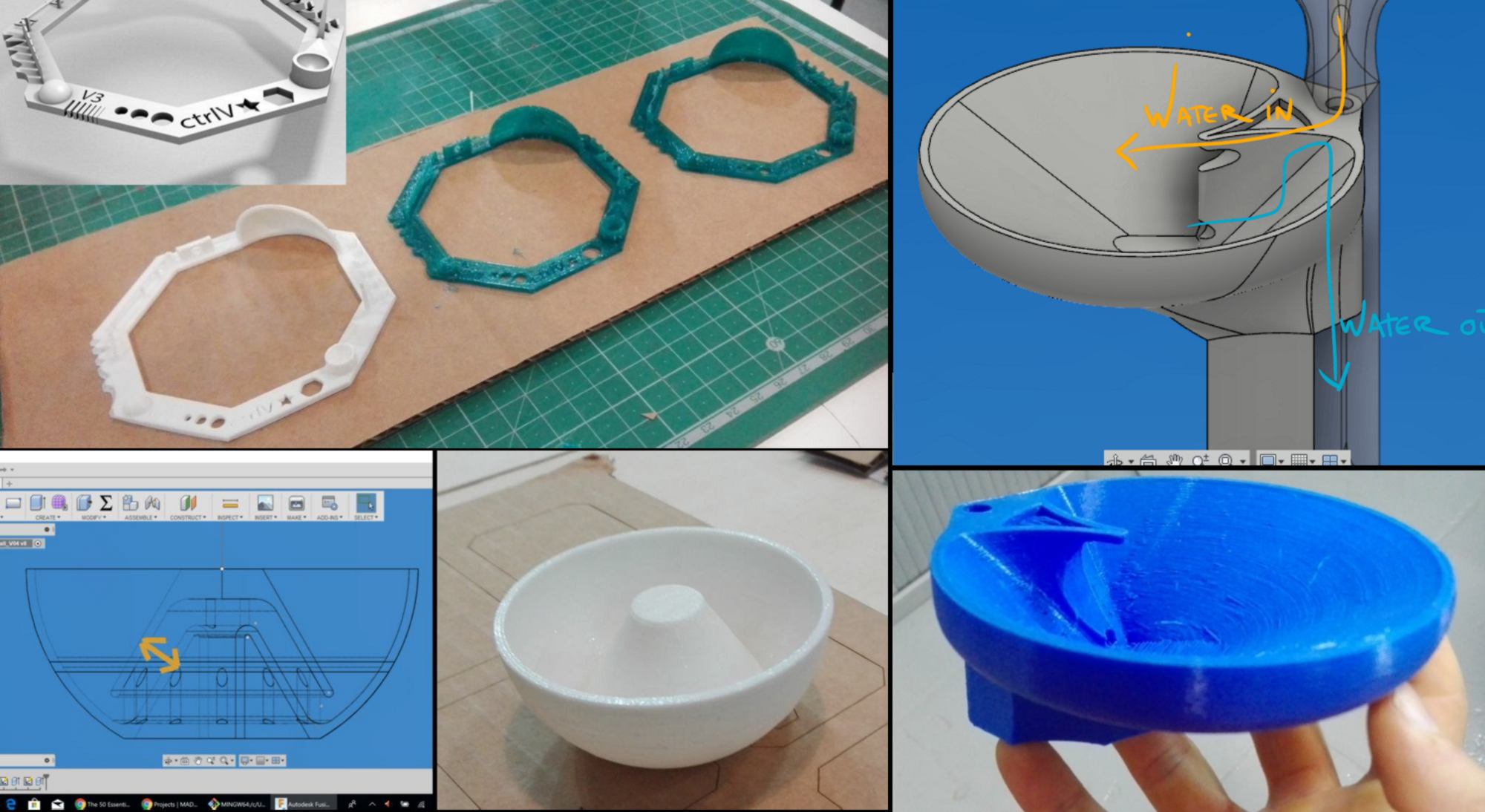 As a group we tested several printers using an identical test piece. I also designed and printed two small-scale prototypes of a siphon system.