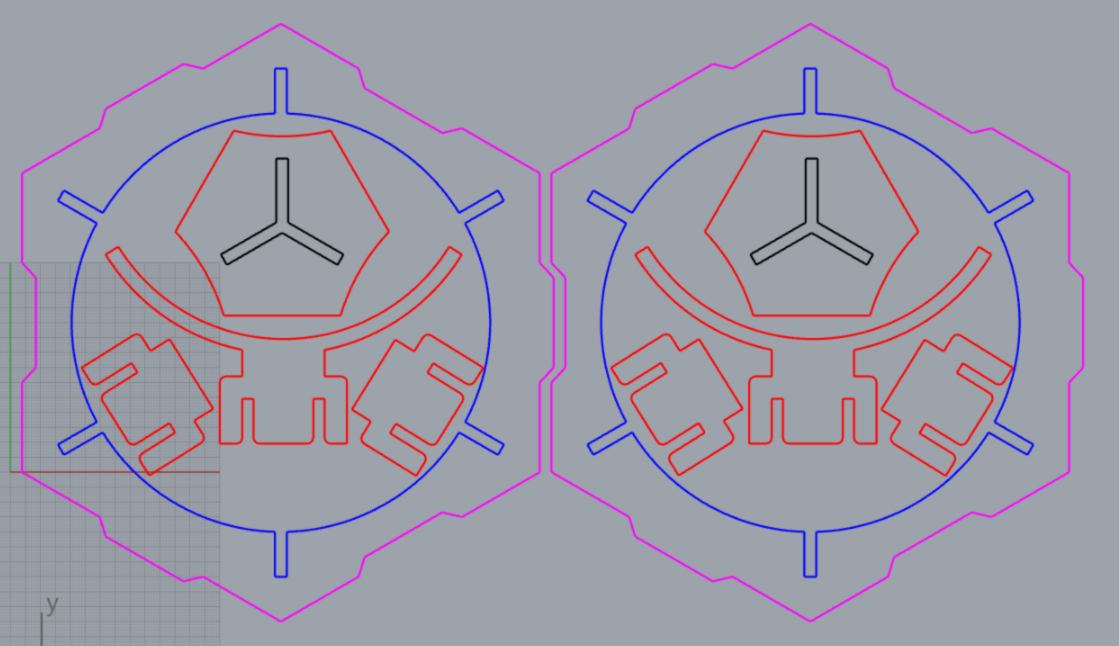 I must re-design my board tomorrow. This mistake has given me an idea to alter my design and add some fun to it. This week, we will also begin to use the CNC machine, therefore I work on the green wall system, laser cutting a few more modules to have a better idea of what it will require. This time, I order my cut so pieces at the centre are cut before the outer pieces, and so on :