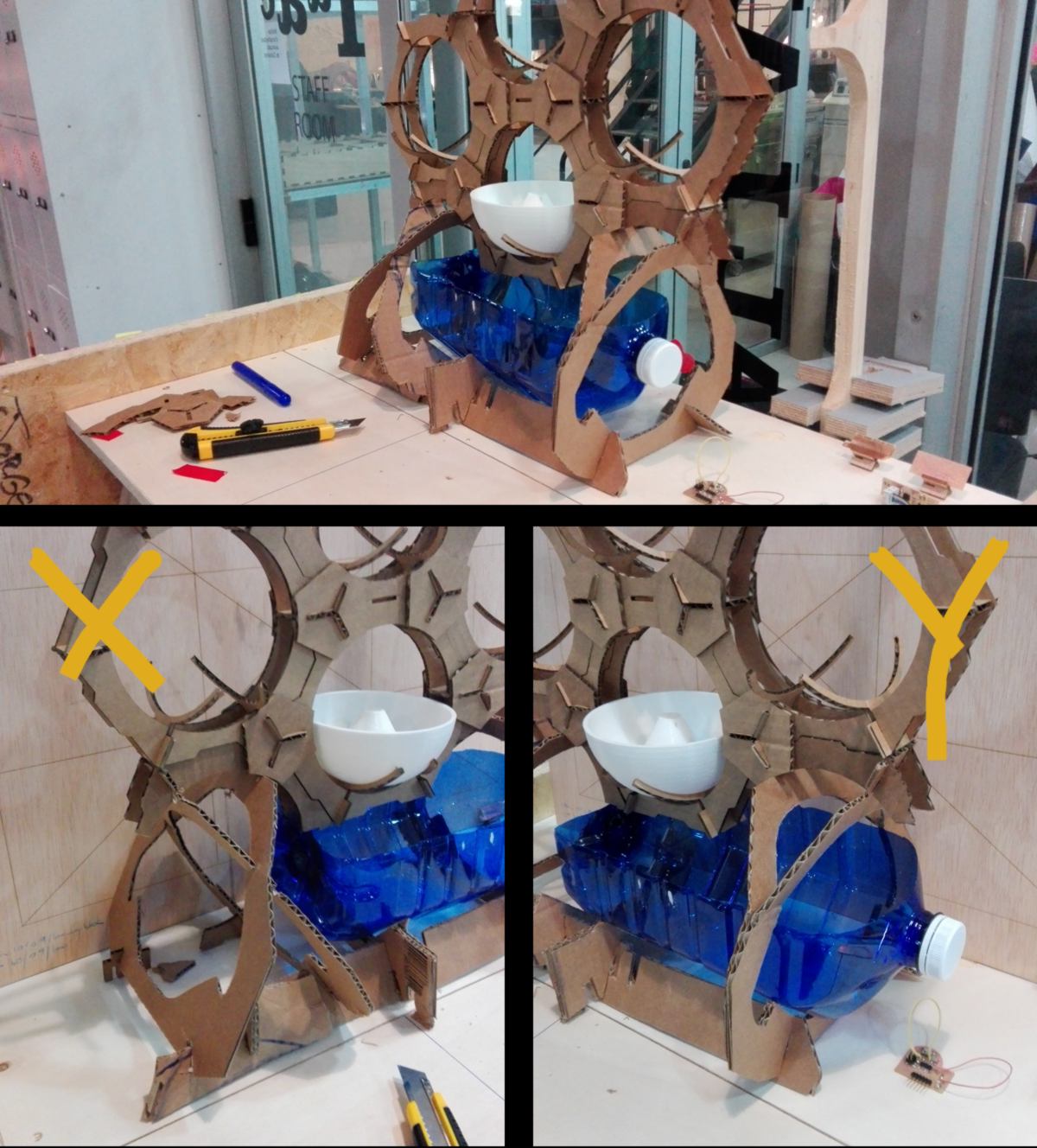 The CNC week approaching fast, I begin to prototype the base of the green wall, containing a receptacle for the water and fish. I test two different type of support, varying shapes to find the one offering best resistance to vertical and horizontal forces: