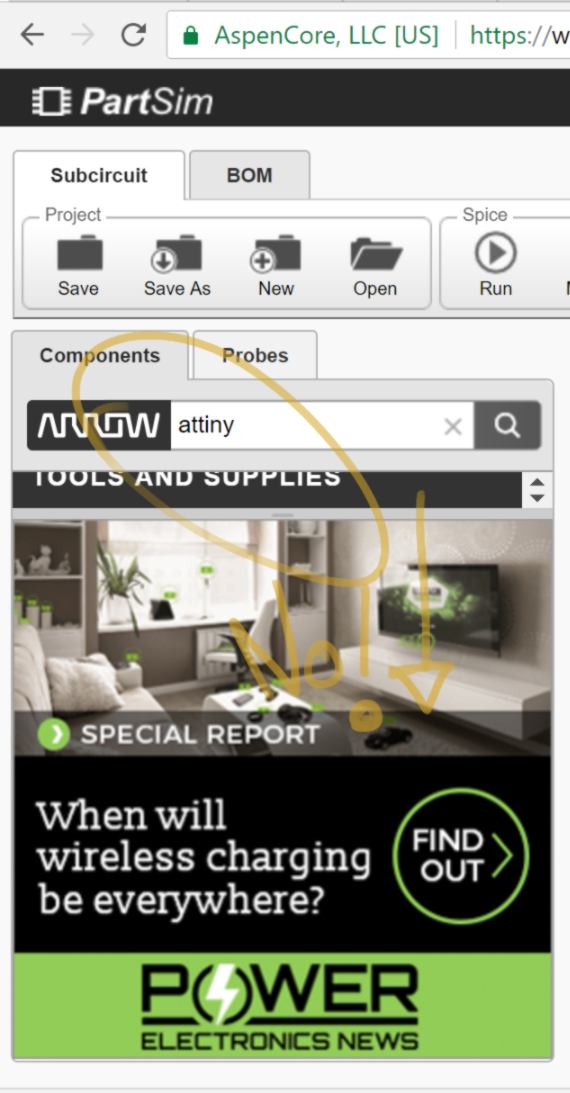 Looking for another method to simulate my board, I look at partsim . The design of the online tool is really sharp but the location of the advertisement makes it impossible for me to use the drop down menu :