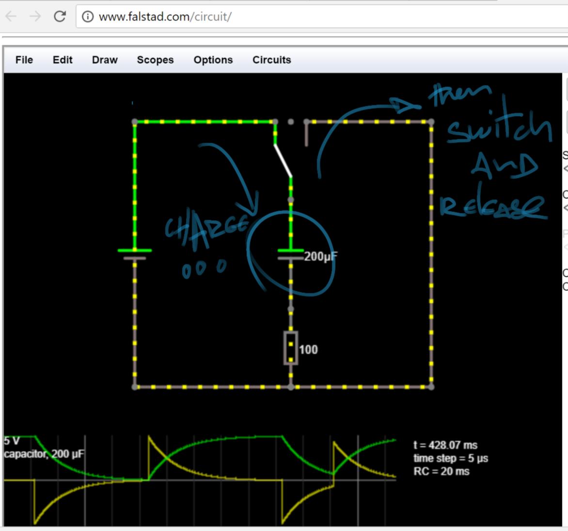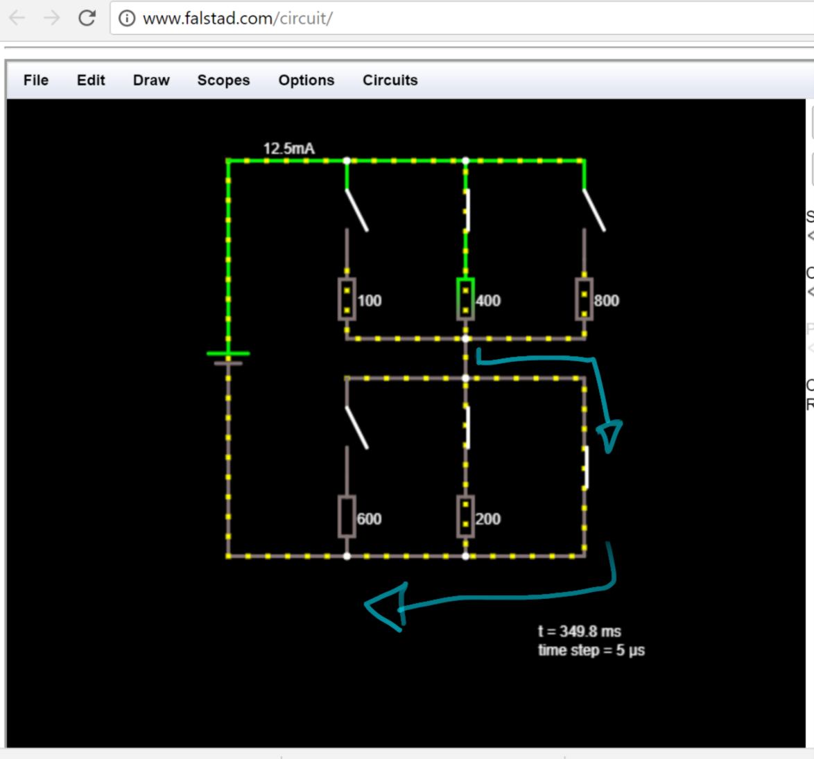 Looking at falstad , I learn a lot about how electricity reacts with visual feedbacks. I get to understand how electricity takes the path of least resistance, how a capacitor stores, then release electricity, and more basic concepts :