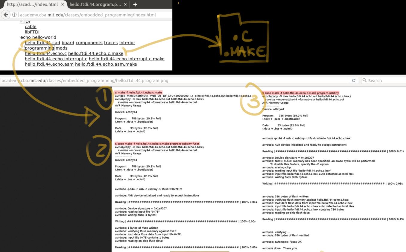 Firstly, to use the programers made two weeks ago, we put together a couple of cables for the ISP header. The uber-important aspect of this tiny fabrication is to remember where the ground is. Black cables are usually used as a guideline. I design mine with this in mind, also ensuring that the ground is located by the logo and name of the manufacturer :
