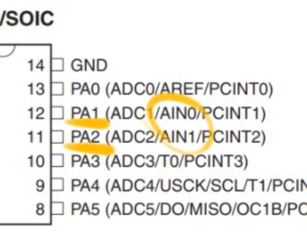 Then comes the analog comparator, compares the input values on the positive pin AIN0 and negative pin AIN1: