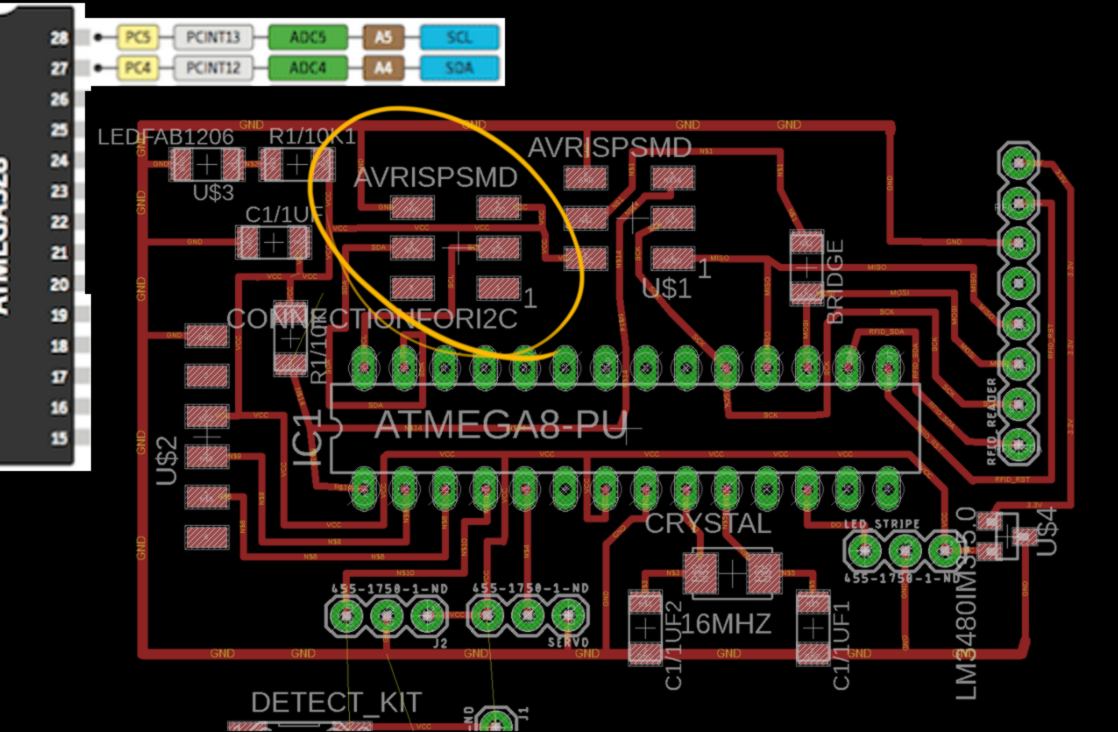 I noticed that during the class yesterday, this network was set up using the ISP headers of the board. I know that it is possible to do so with ATtinies due to their pin configurations. But what about ATMEGA328P? Unfortunately I cannot find anything that points in this direction online. What I can do, however, is to setup a 3x2 header that will be connected to the 4 connections I require.