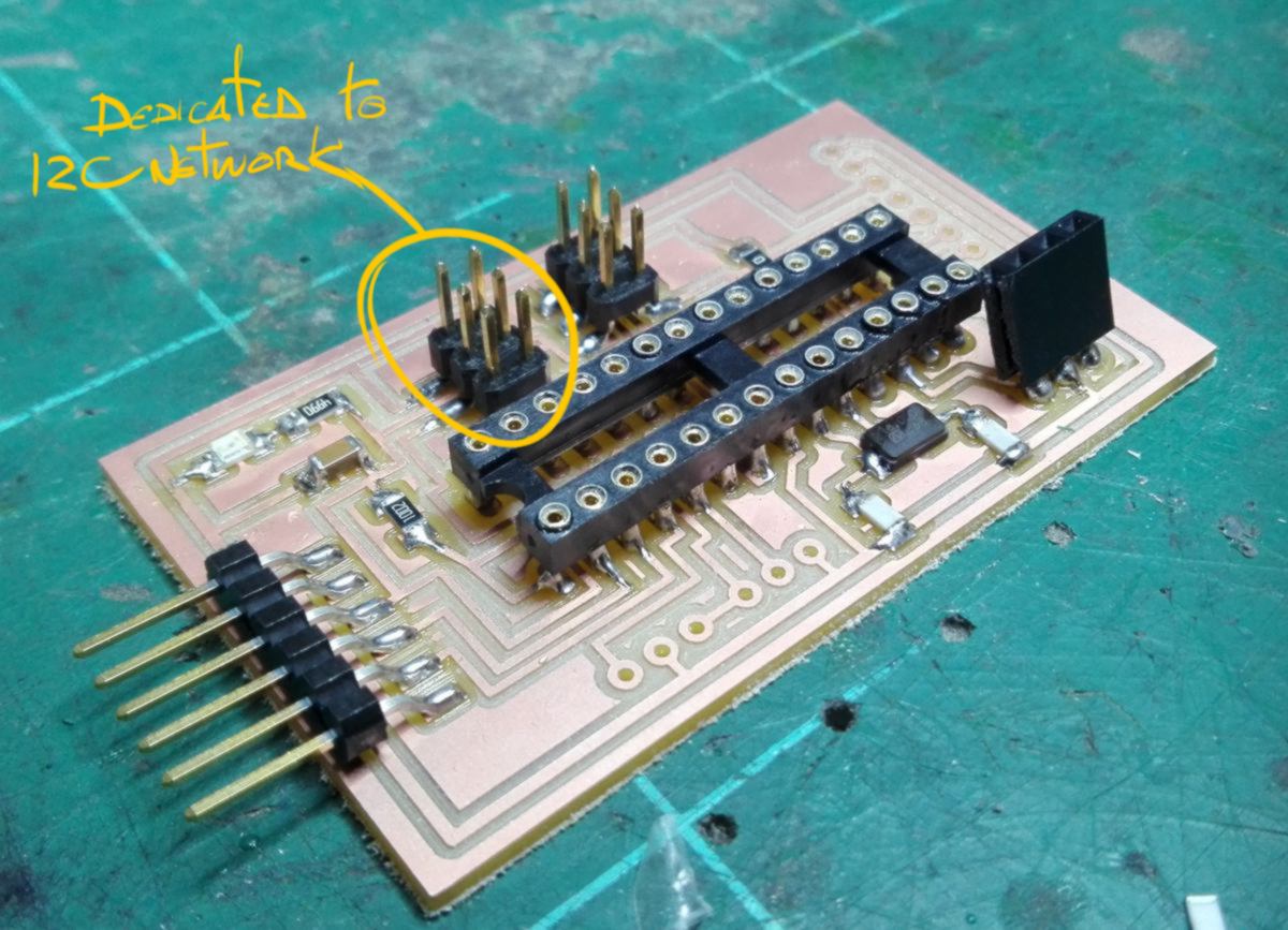 20.06.18 / Last minute addition! My story with I2C network is not over yet. Actually it takes a central place in my final project, and after making specific board for it, based on both ATMEGA328P and ATtiny44, I succeded in creating a network between them :