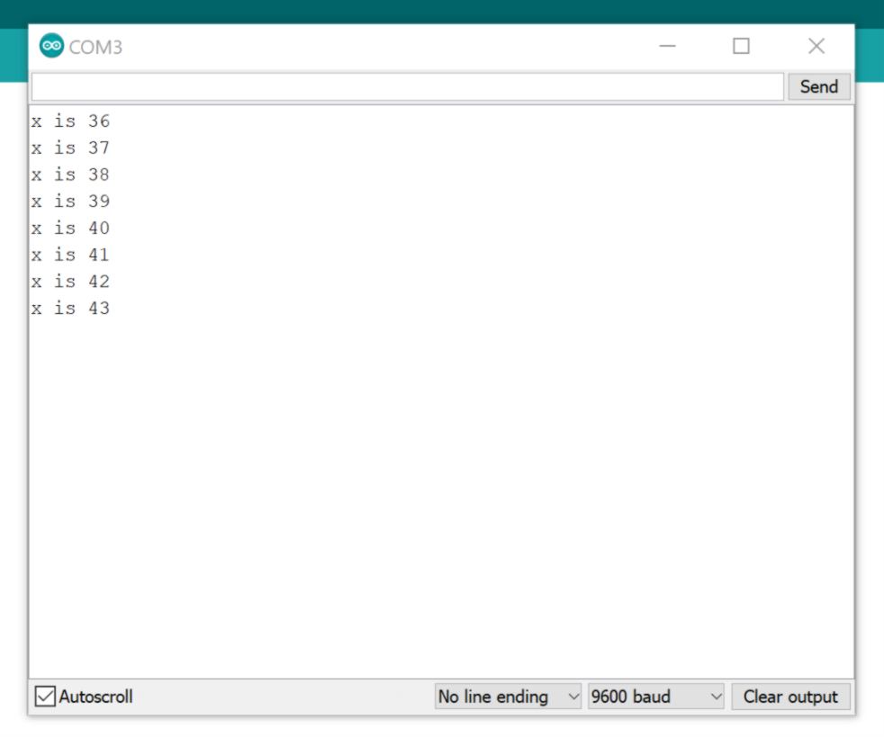 I then have a look at the serial monitor of the slave microcontroller. In this code, the Master is programmed to send 6 bytes of data every half second. Once that message is received, it can then be viewed in the Slave board's serial monitor window :