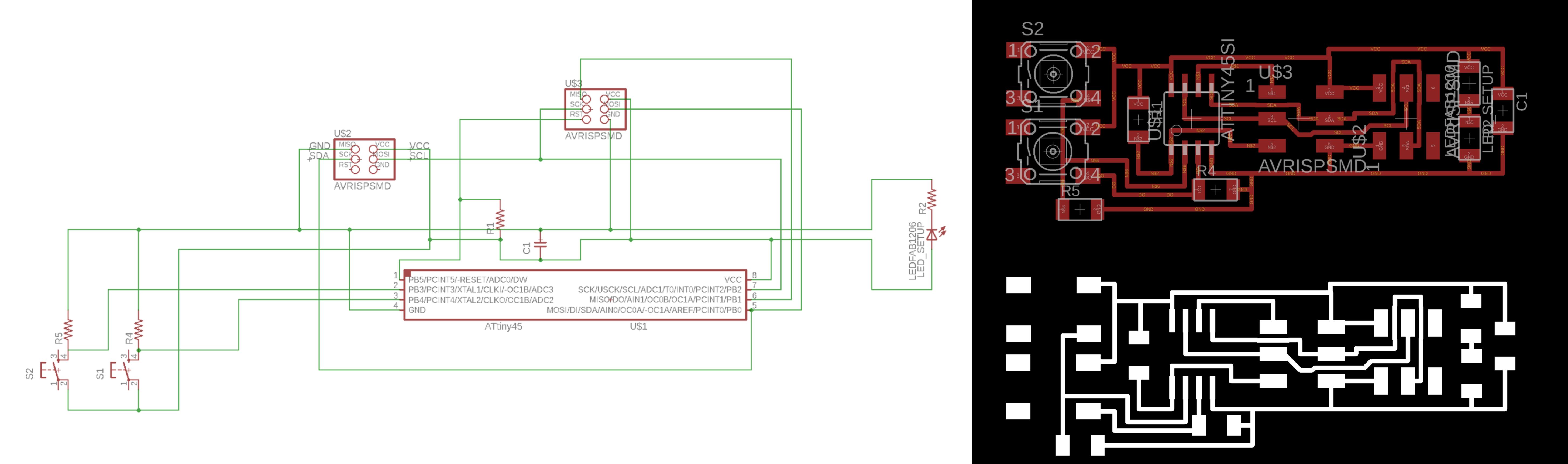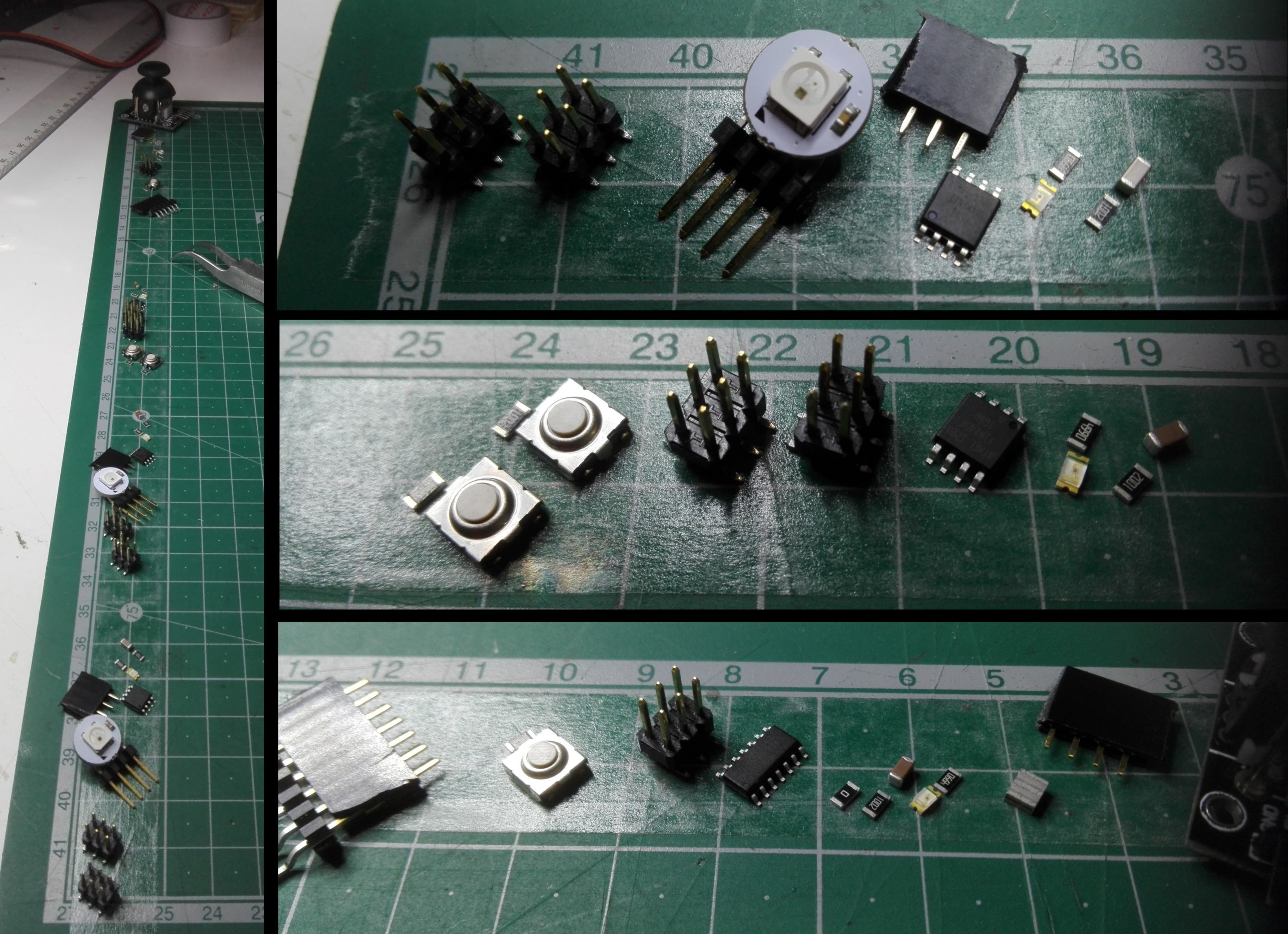 27.04.18 / I mill, solder and stuff my new board, then set it up with the old one and an Arduino for I2C network protocol. On the way, I got some new microcontrollers and extra toys :
