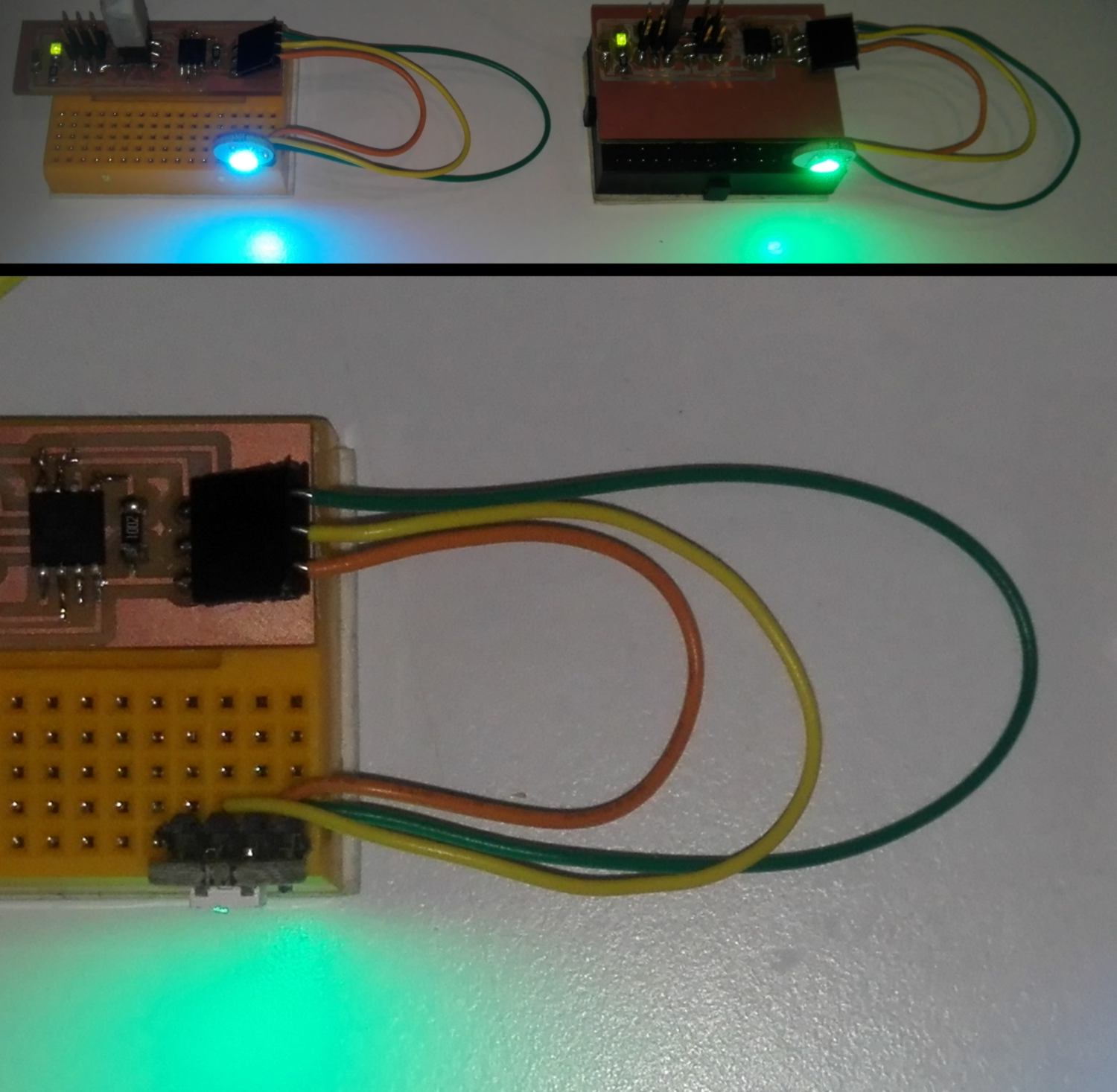 Ideally it would be even better to get a breadboard out, a ATtiny45 fitting on it, and re-design the PCB from there rather than constantly plugging/unplugging wires and programmer. By this time though it is the end of today, and we are left with our setup designed for testing purpose :