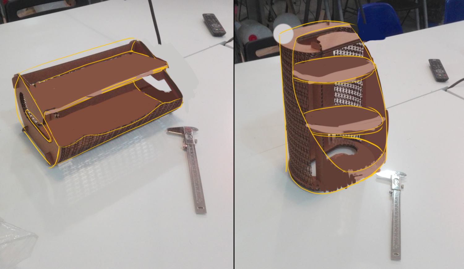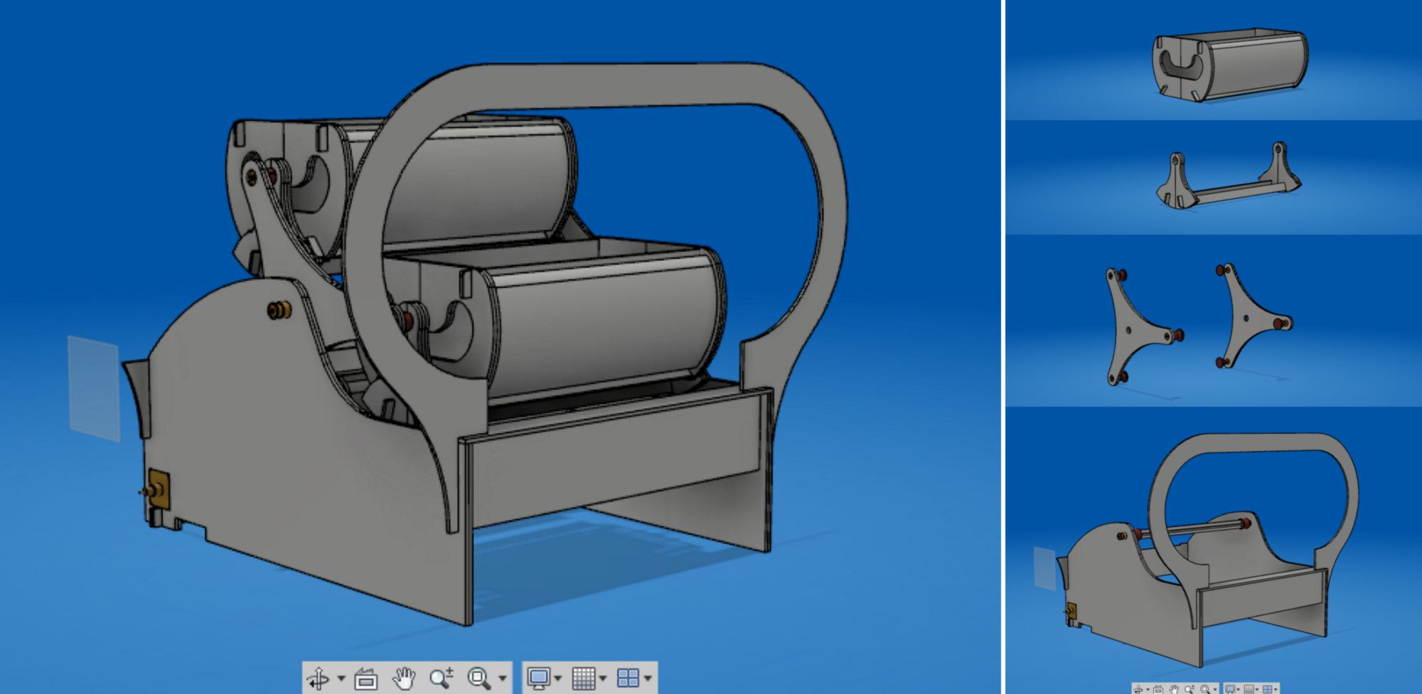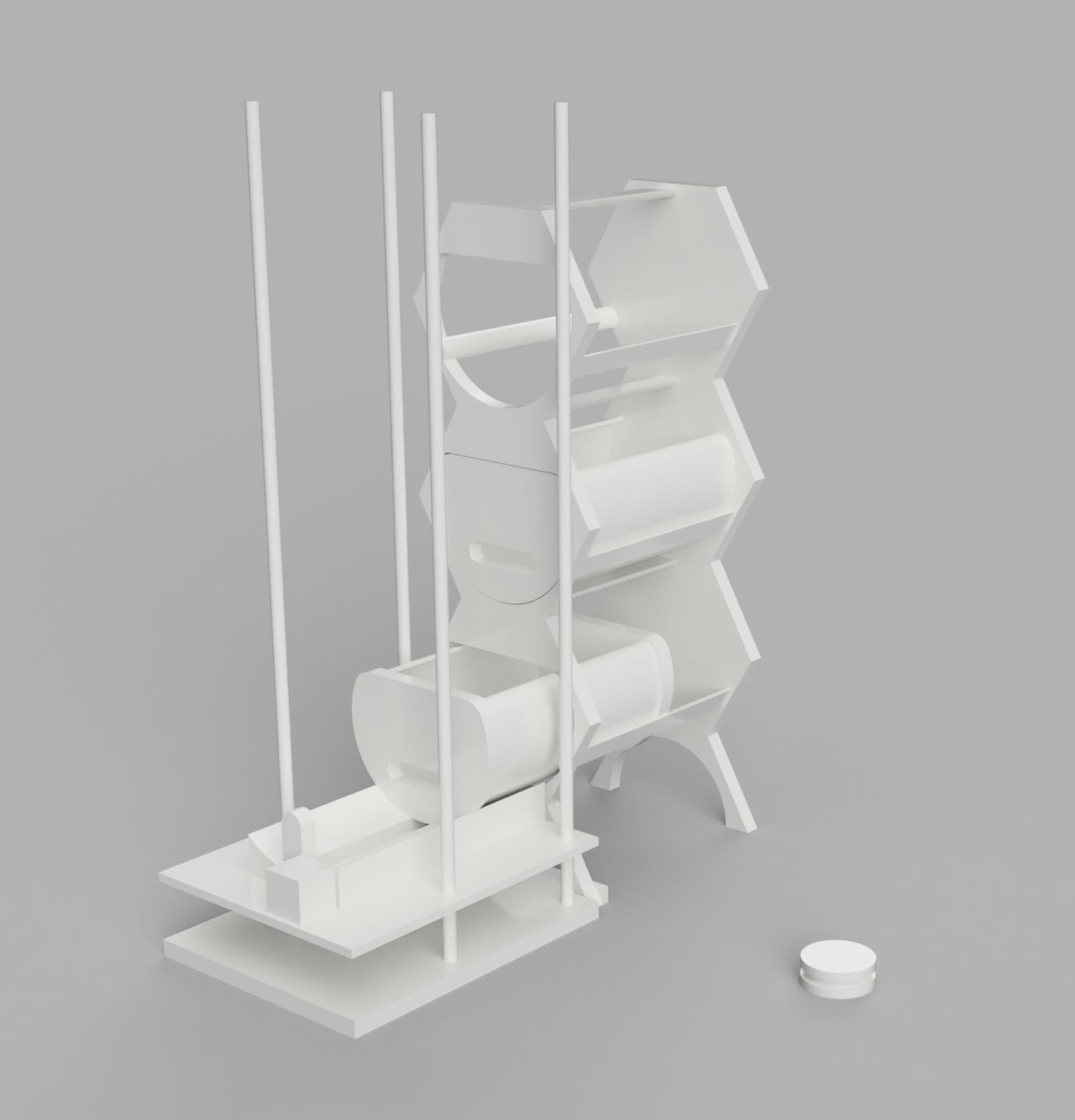 I re-design the drawer, and design the extra elements : shelves, rotating structures, stand, and connectives pins.