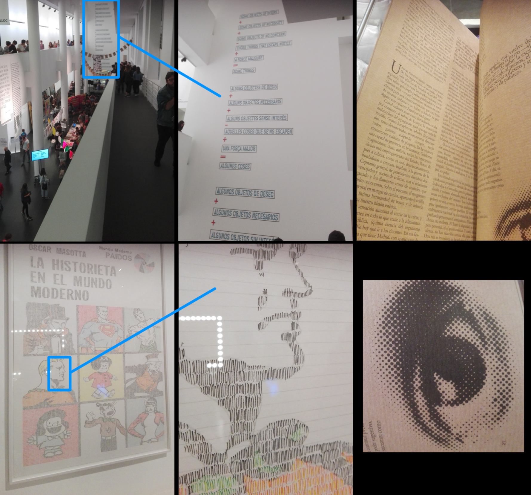 Tonight is a special evening where all museums in Barcelona are open and free, so I head to the Museum of Contemporary Art to see an ehxibition about comic books and printing. I find some design which would have greatly benefitted from the replicability and precision of a drawbot :