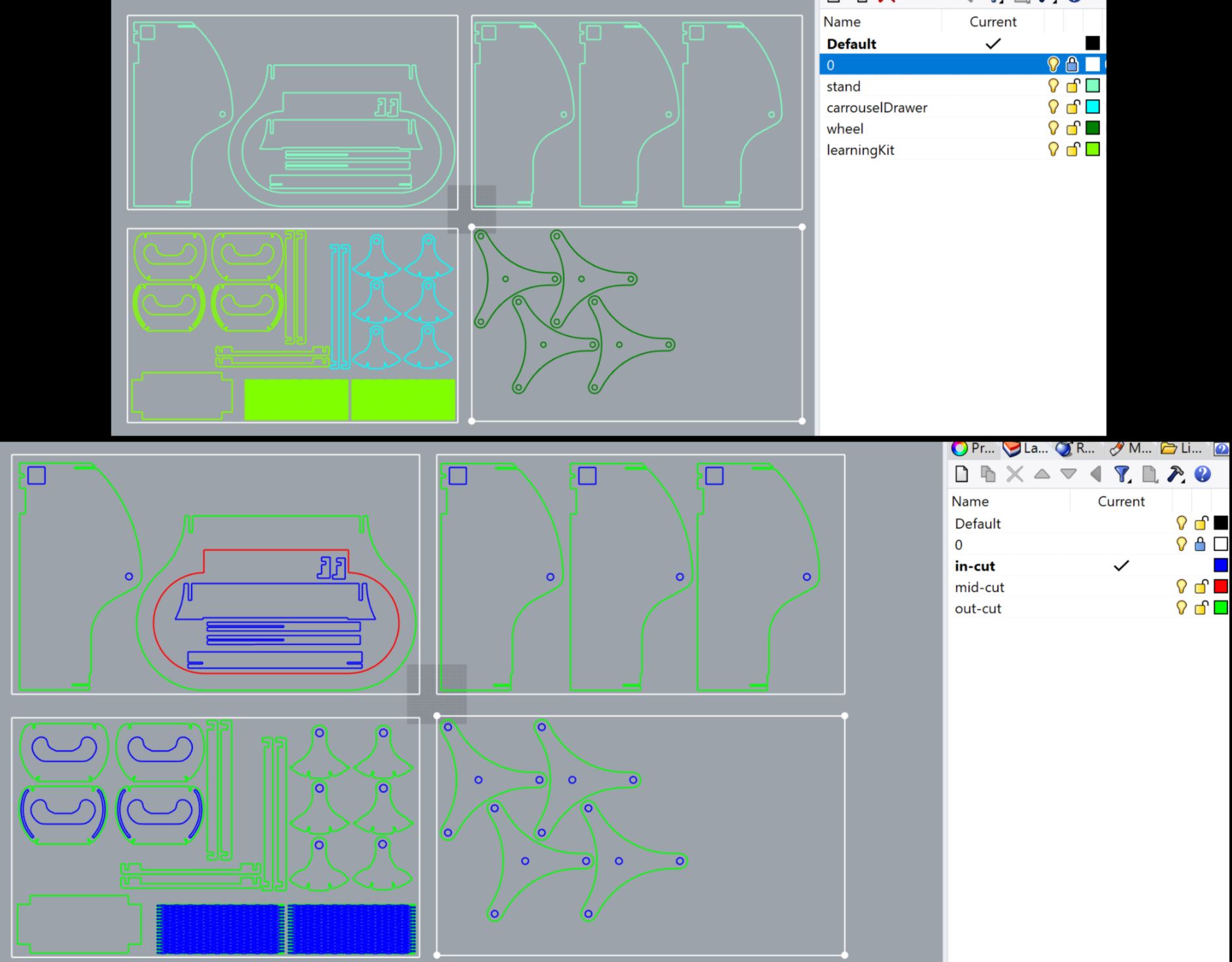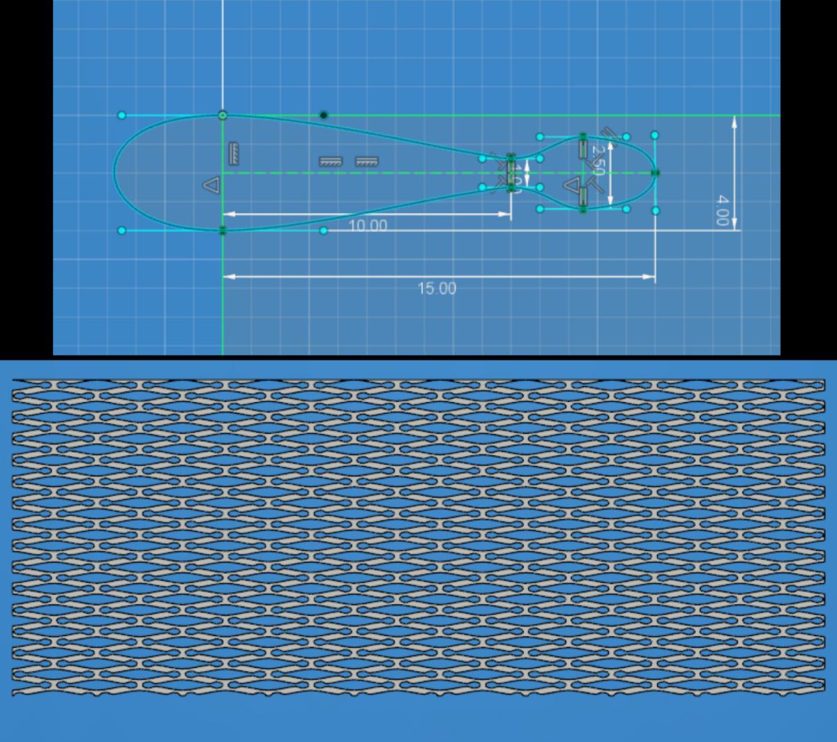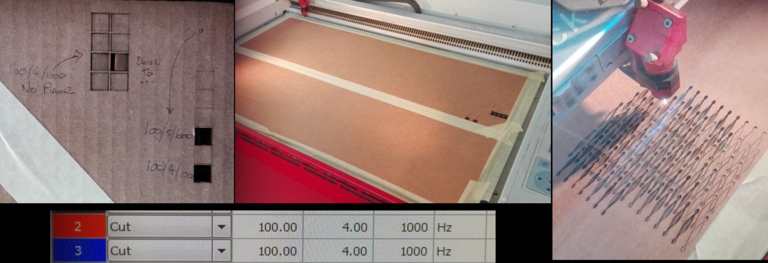 I then prepare the files for laser cutting / 3d printing. This include designing the round panel to the side of the learning kit. From the test cut I made a few months ago, I select the pattern which enables me to bend the material easily, and apply it to a rectangle the size of the panel lay out flat :