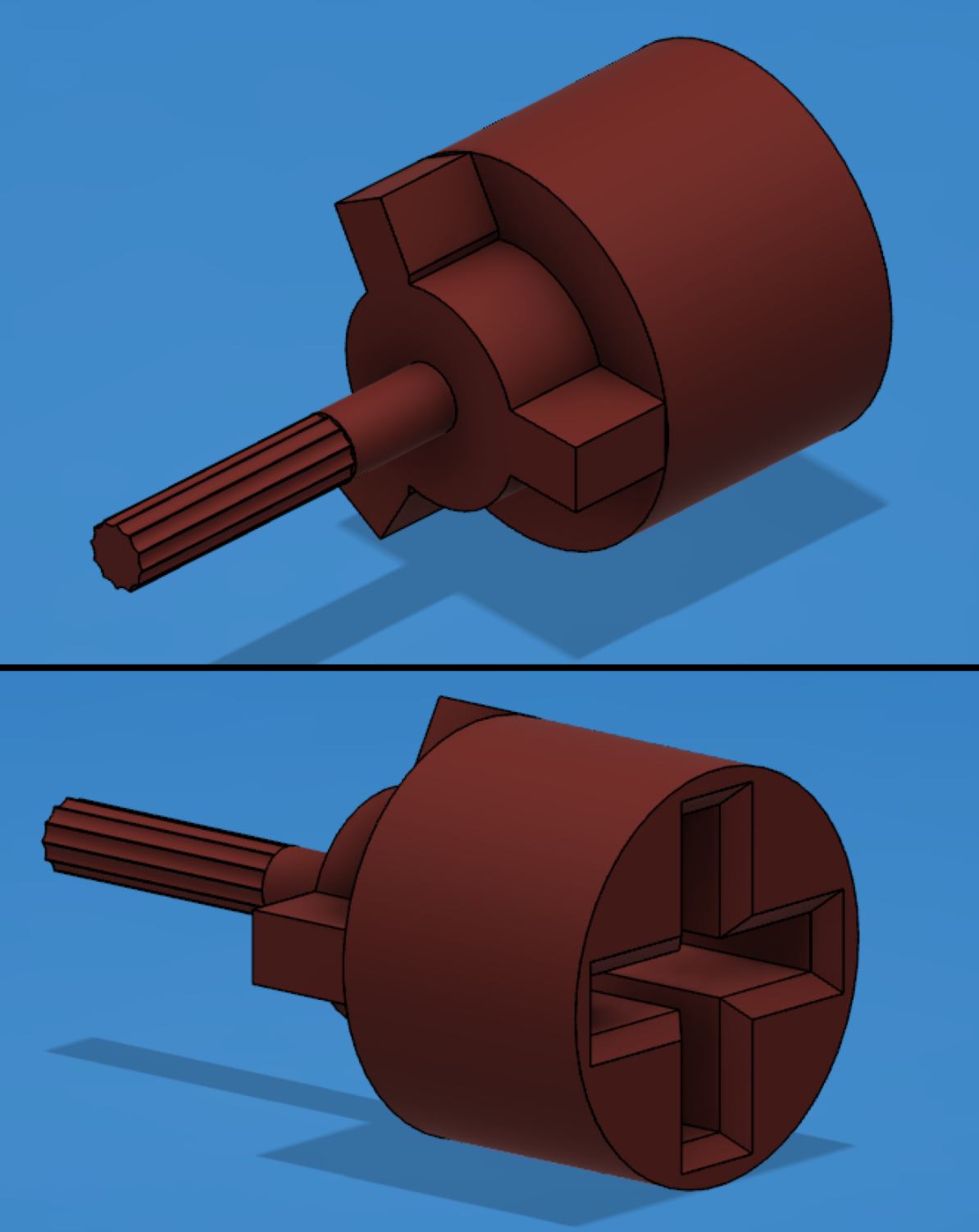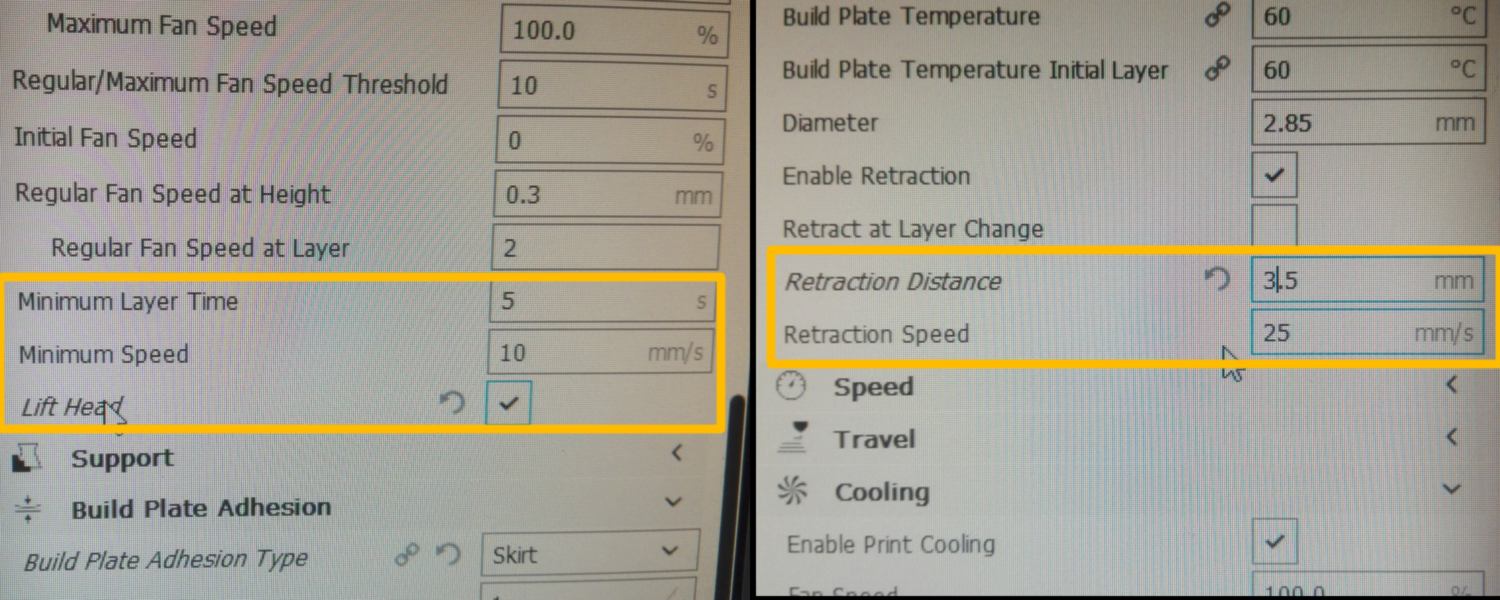 To remedy that, I modify a setting, forcing the printer to mark a few seconds pause between two layers, so that the former layer has time to dry. I also make minor changes so the wheel follows the rotation of the 3d printed shaft.