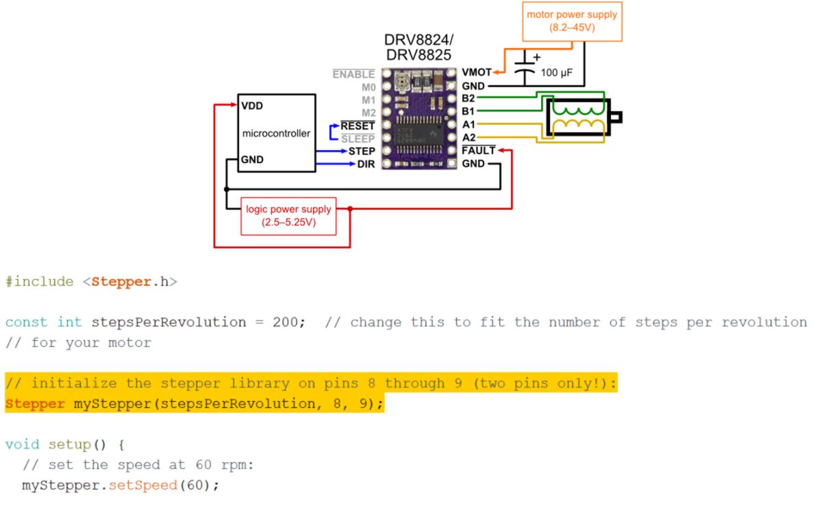 Stepper myStepper(stepsPerRevolution, 8, 9);