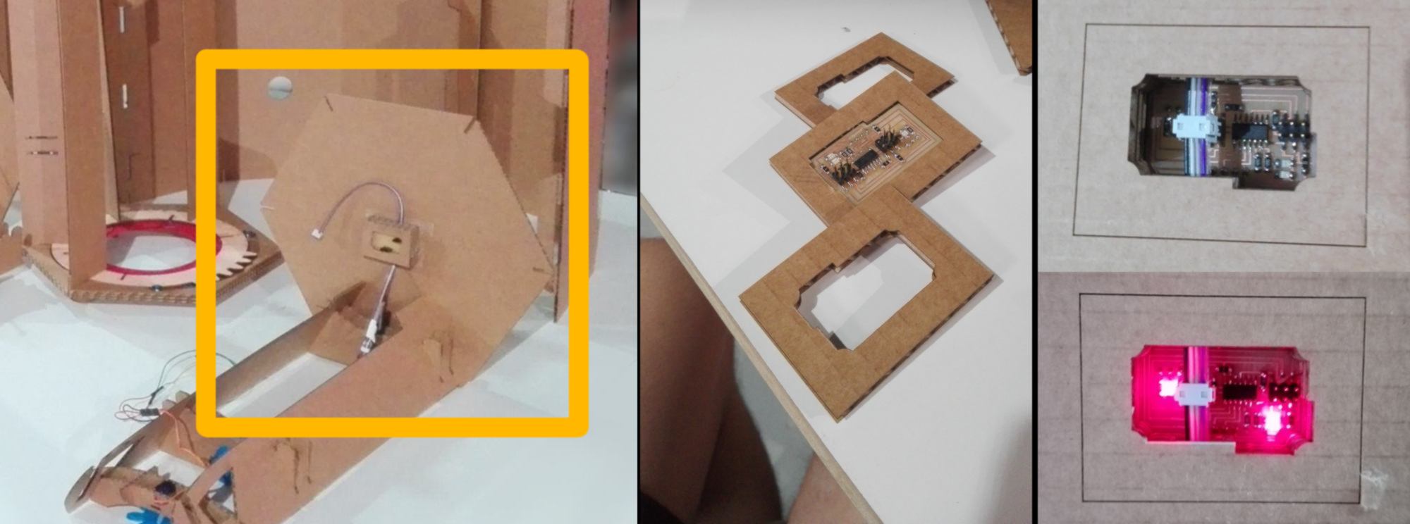 First put the PCBs in their cardboard casing. The two images below are there for reference, but do not either build the structure or stick the PCB into place yet, we will do so in the next step.