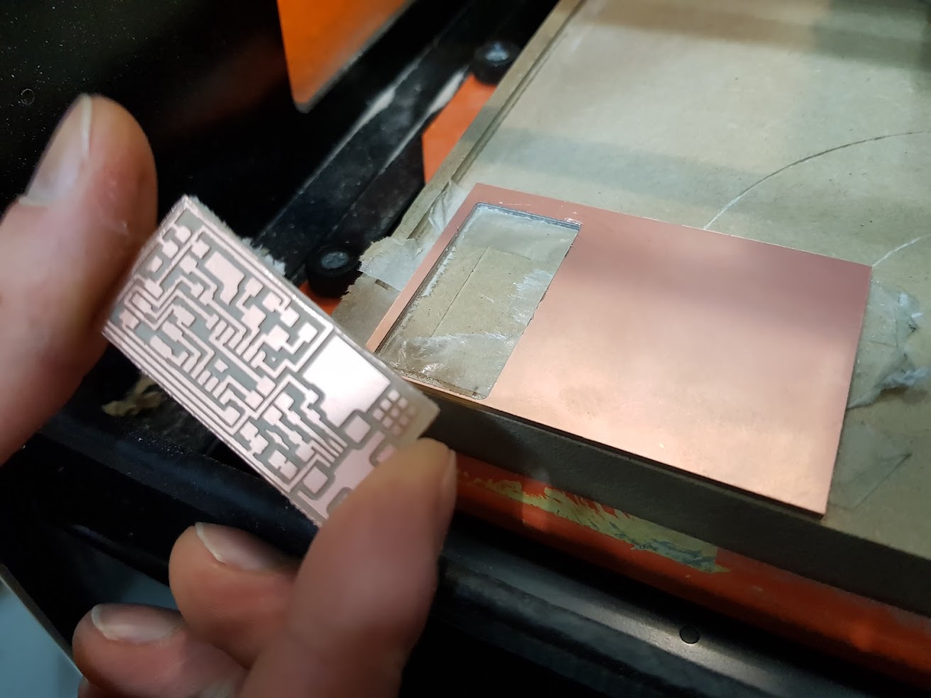 As you can see the cut was not deep enough, this is probably because the board is bended and we didn’t set the Z origin at its lower point.