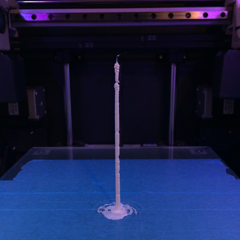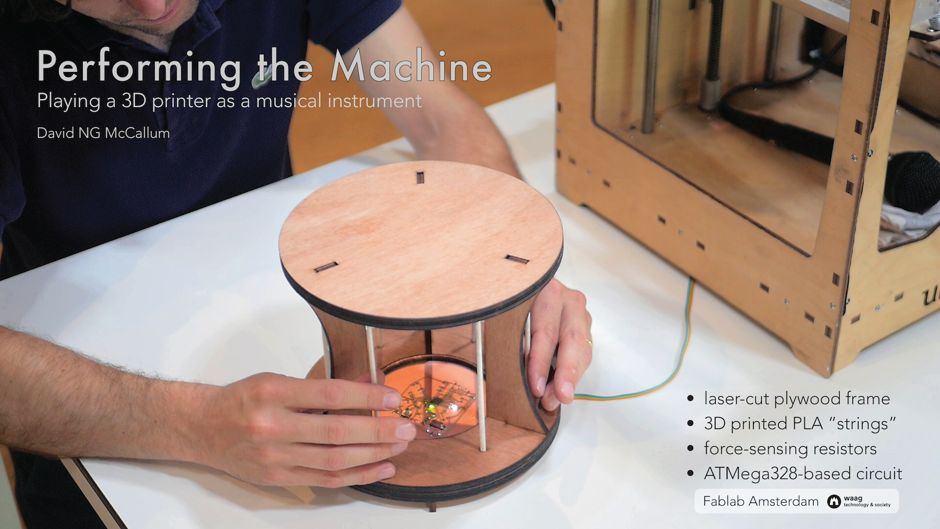 Each expression comes from the gcode used to print each of the rods, so the instrument is in effect performing elements of its own construction. The frame is designed to look similar to the printer that is being used, an Ultimaker Original.