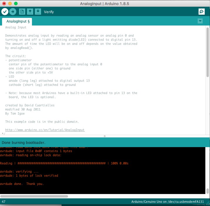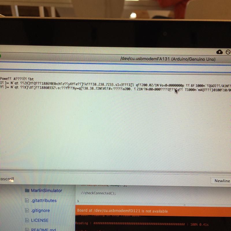 Connecting to the printer using serial works. I get "ok" back when sending commands. I used screen -L /dev/cu.usbmodem12341 115200 -L in the shell.