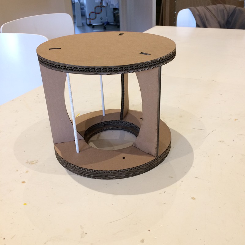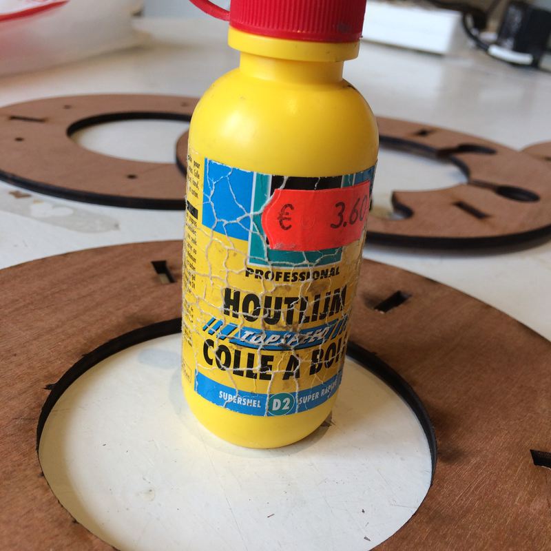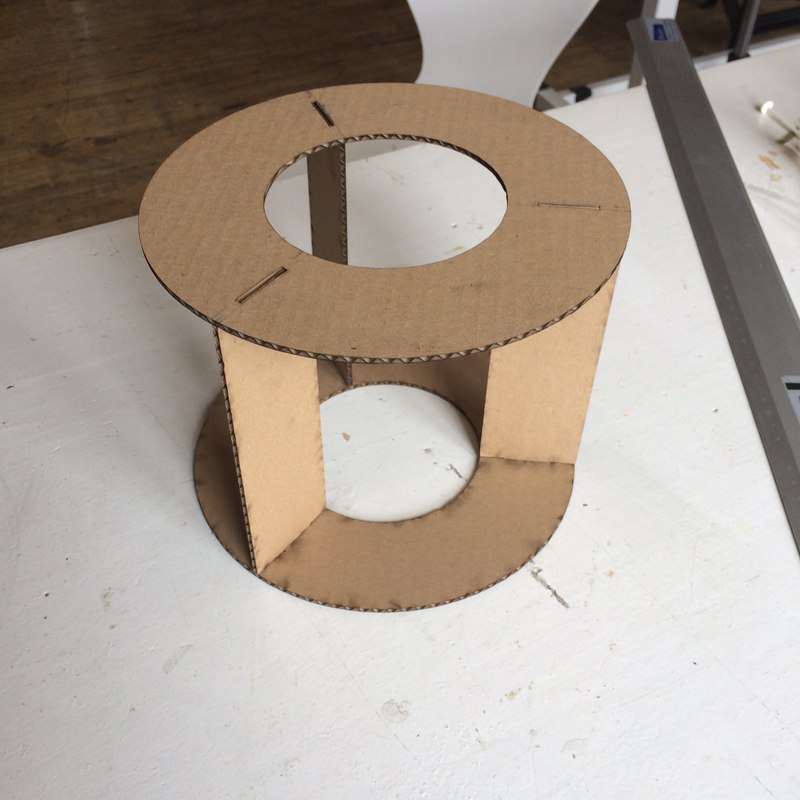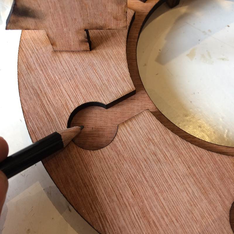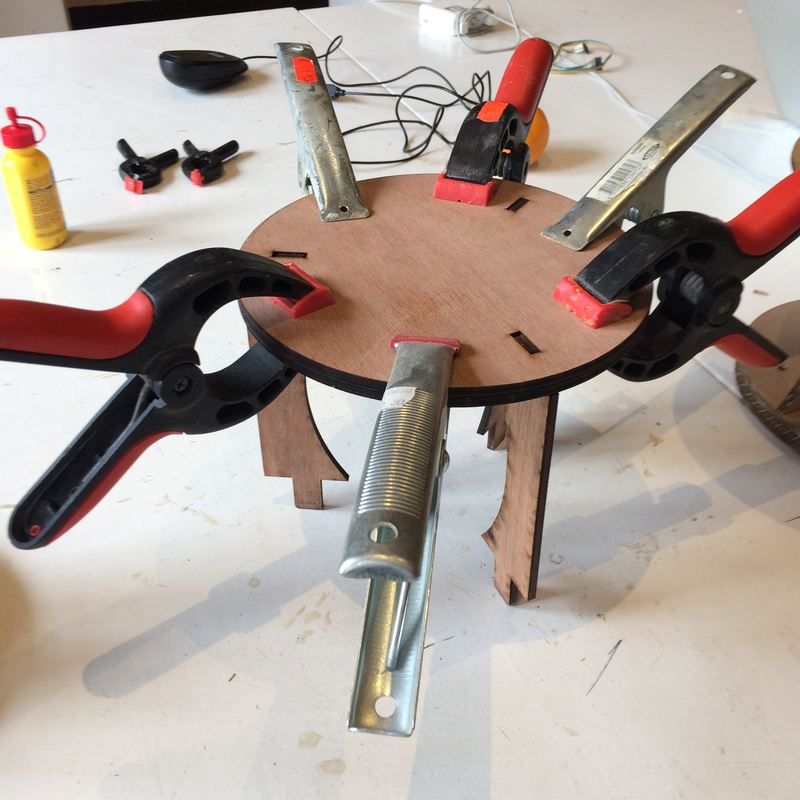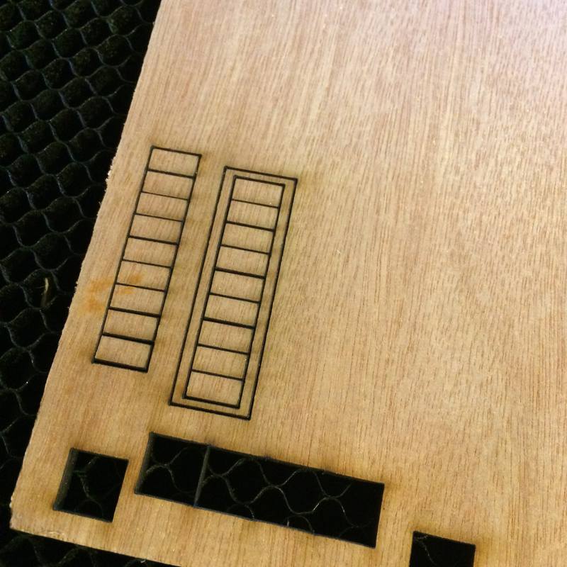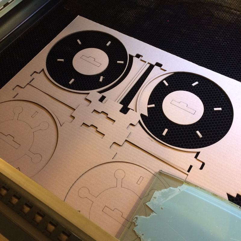 - Subtractive production: plywood frame cut with a laser cutter
