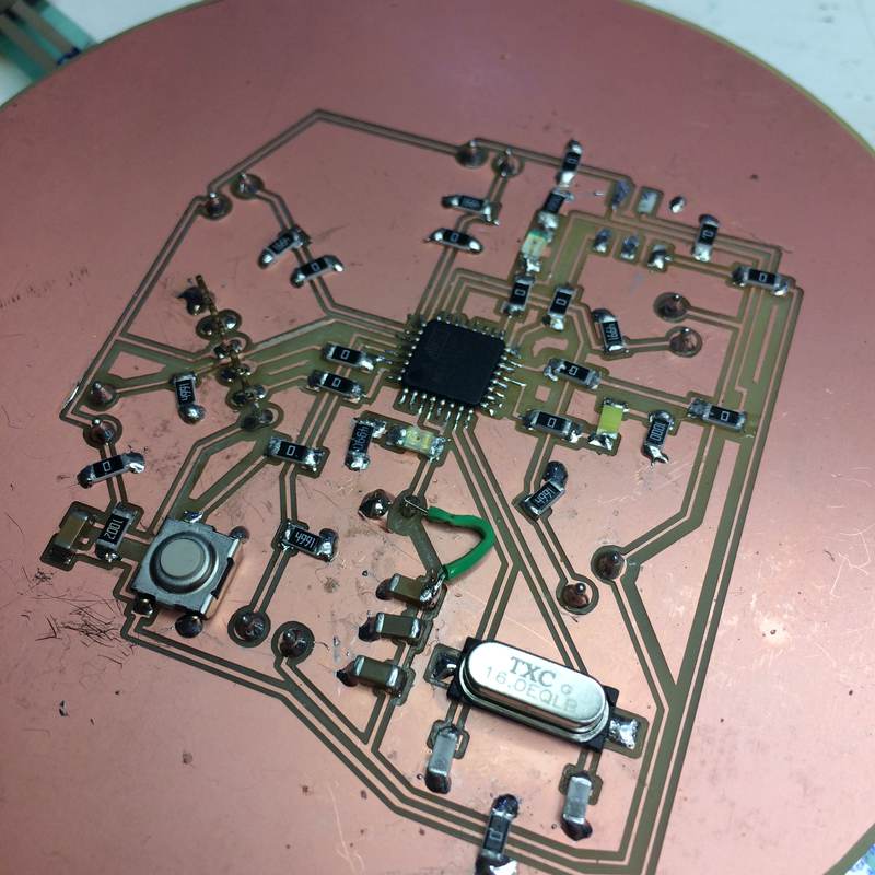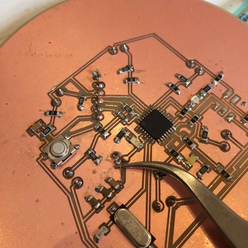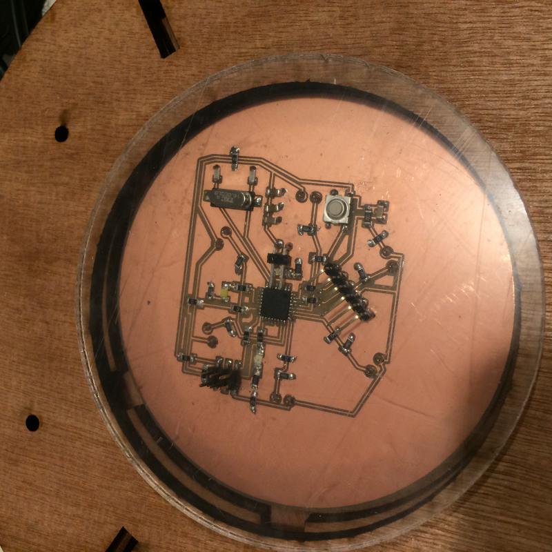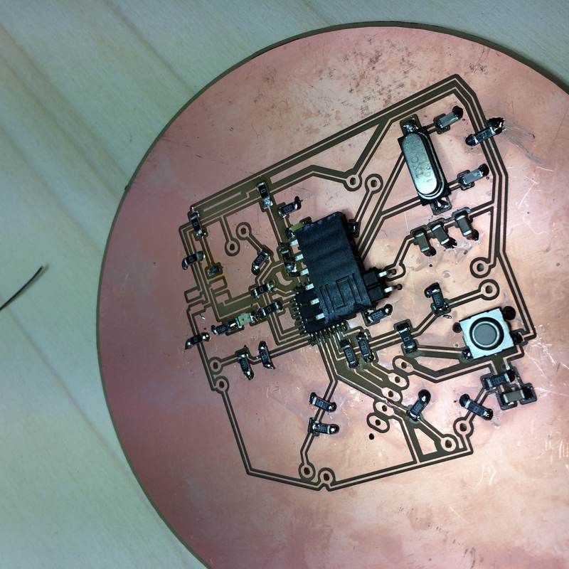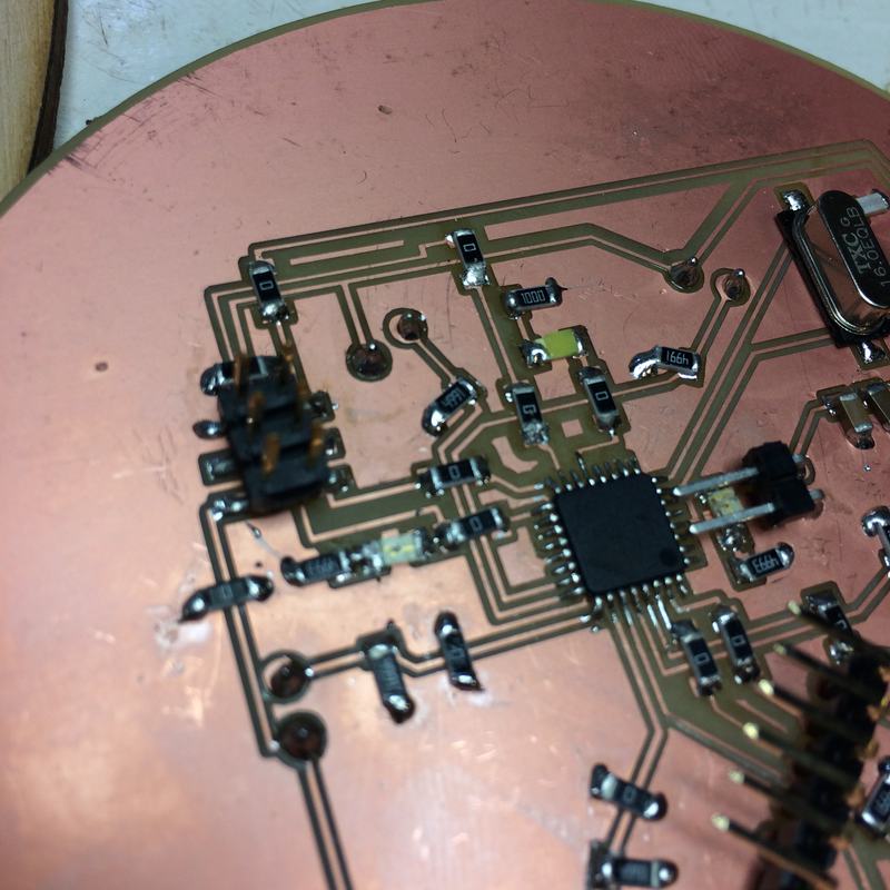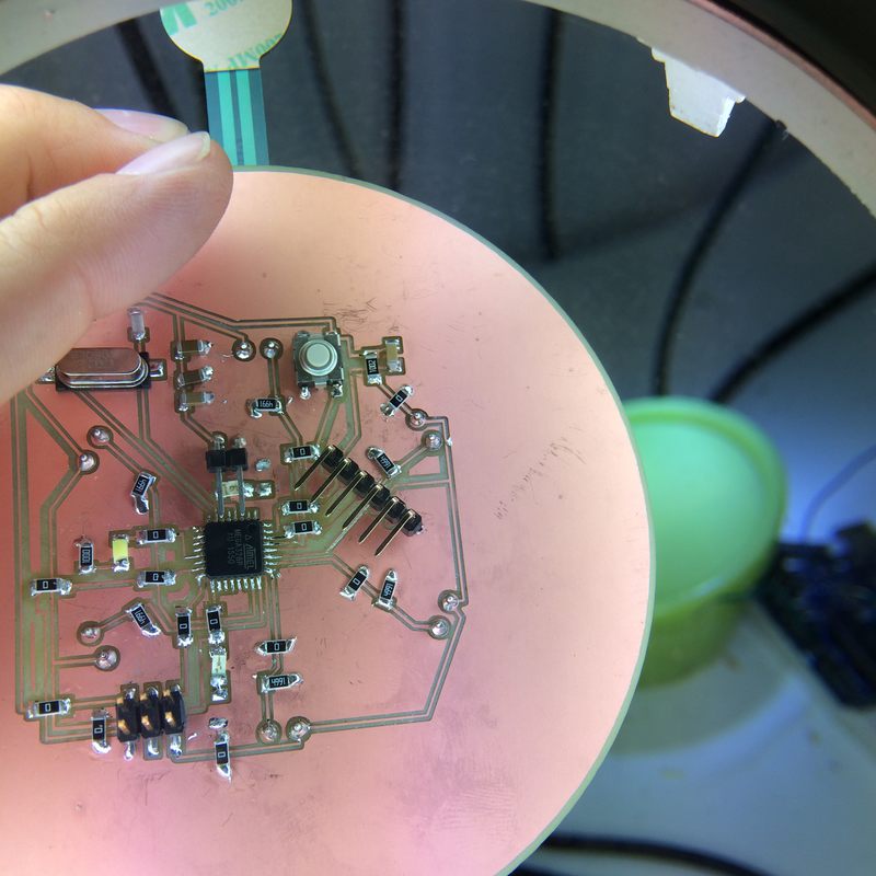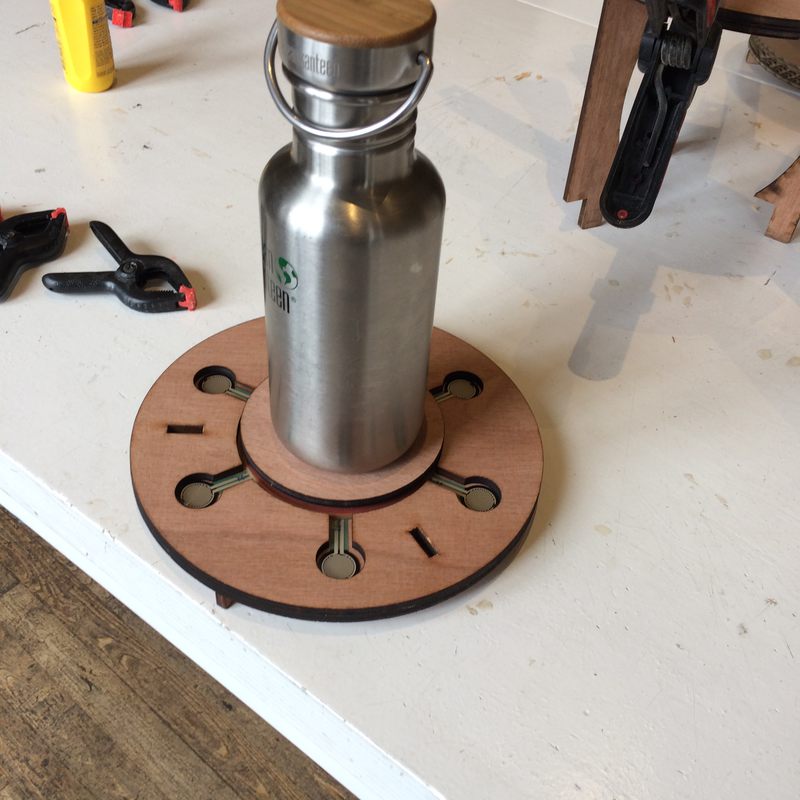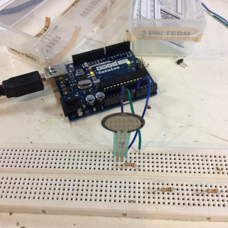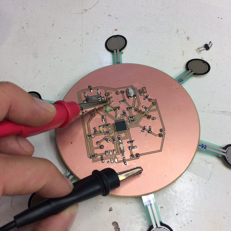 - Electronics: ATMega328-based circuit produced on a CNC milling machine, using force-sensing-resistors as input with a token LED as output, and establishing a serial connection to an Ultimaker.
