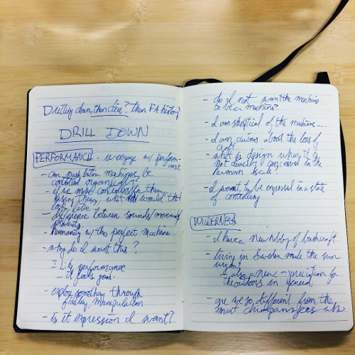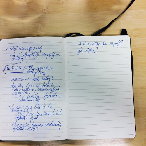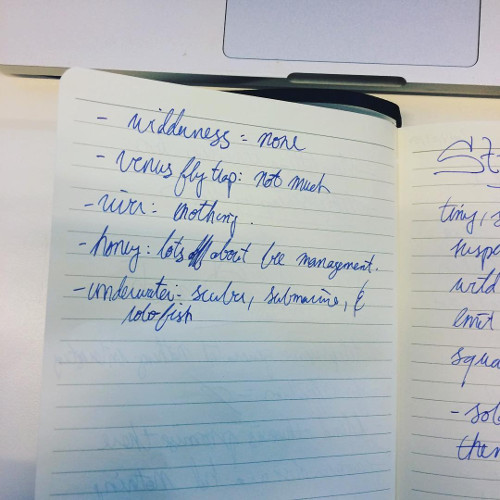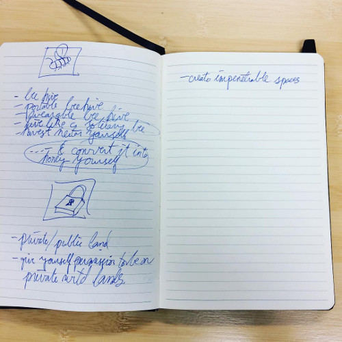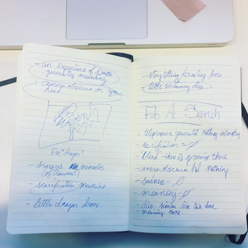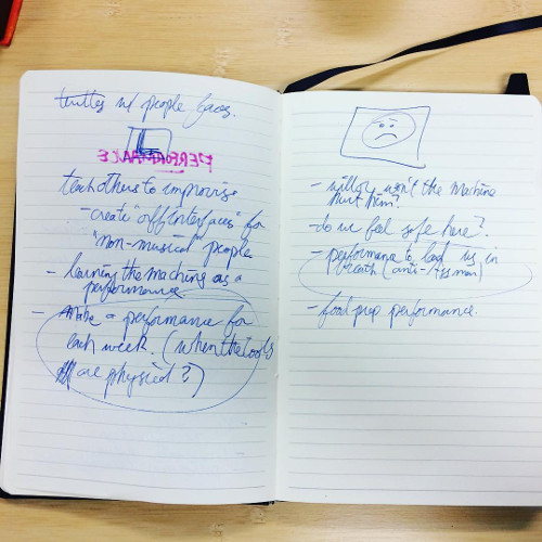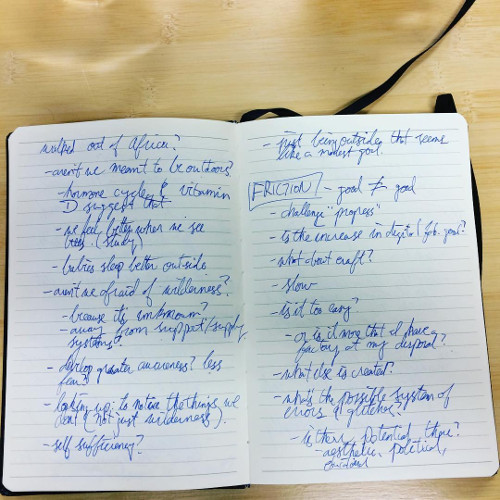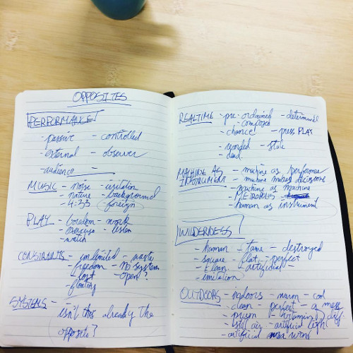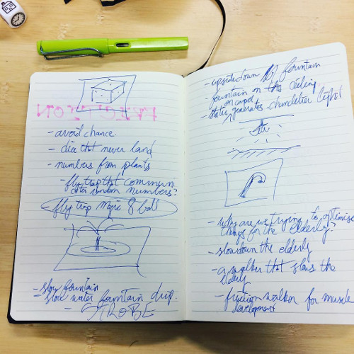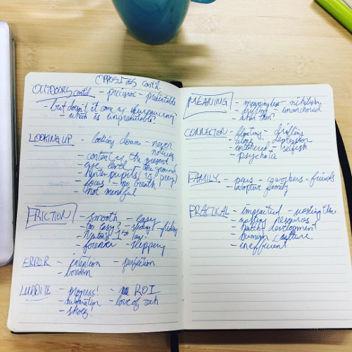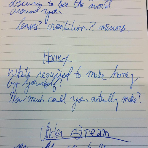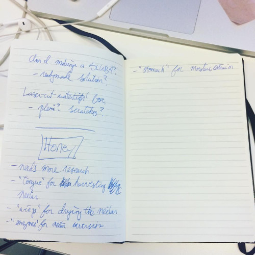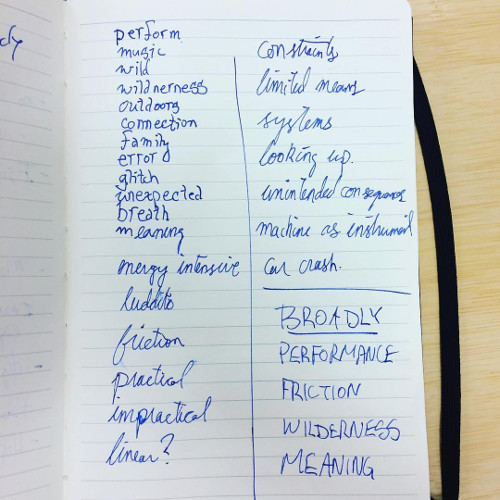 In the interest of fulfilling the assignment and presenting a complete proposal with sketches, I used ideation exercises to generate a list of possible final projects. This is ironic because I teach these exercises to industrial-design students, but rarely use them in my own work. But I know that, when learning new skills, I find it difficult to generate new ideas on the fly, so I wanted to complete this process before we jumped into everything. All notebook entries were documented in Instagram, for lack of another system to hand.