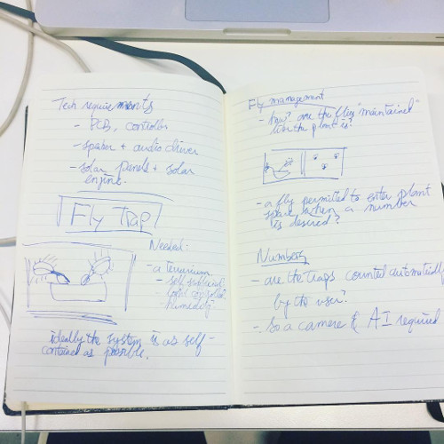 The technology is far more involved. Requiring ways to calculate and regulate the water and humidity in both chambers (this has already been done by others), a way of feeding the flytrap when it's not active, a way of maintaining the fly population, a way of controlling passage from the fly chamber to the flytrap chamber, and a computer-vision system for counting the tripped traps.