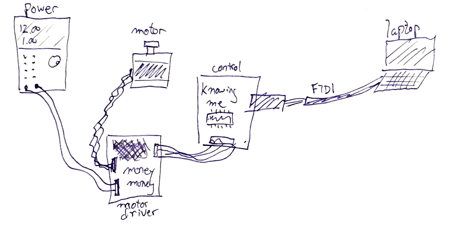 Here are pictures of everything connected (with the computer off-camera connected through the FTDI cable), and a schematic of how it's all wired: