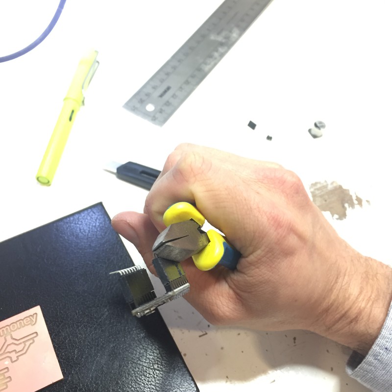 The circuit design was done using Autodesk Eagle and milled with a Roland Modela MDX20. See Week 4 for an explanation of that workflow.