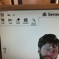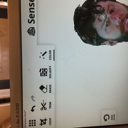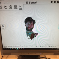 I decided to scan my head, which I assumed wasn't shiny like the walkman. I understood that scanning a living thing, especially yourself, is difficult because you can't ensure that the object stays still (which is important for scanning). Still, I sat in a chair and moved the scanner slowly around my head until I thought I had a relatively complete scan. I was fairly impressed with the scan. It wasn't perfect, because I couldn't stay perfectly still, but the scan even managed to catch my bangs hanging over my forehead.
