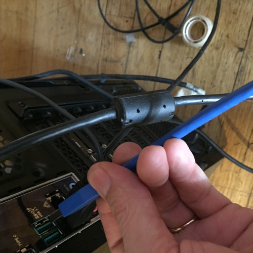 Changing filament. If the new filament is not taken up by the machine, cut an even sharper point, even like a spear point.
