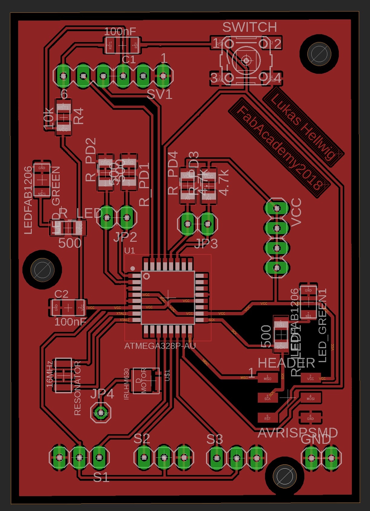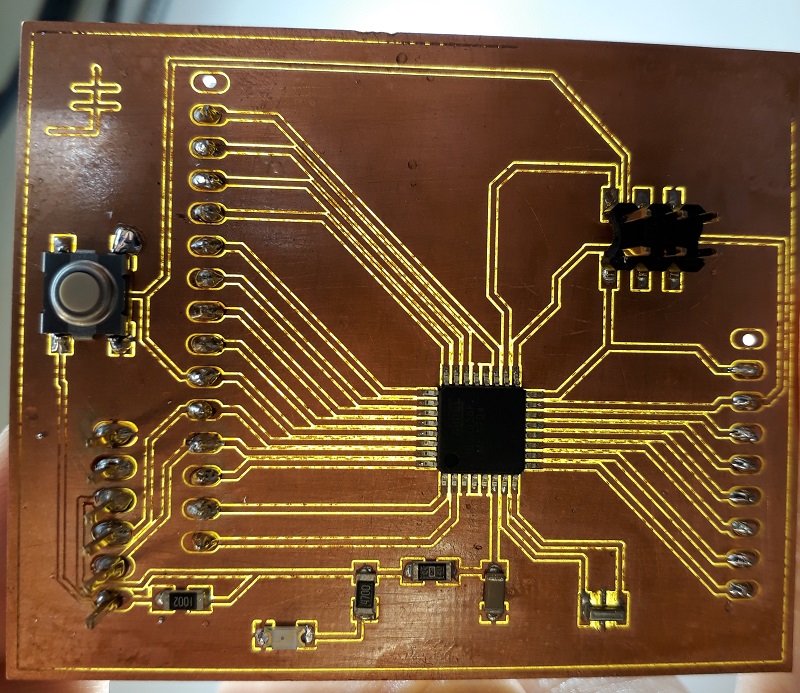 To join the electronic components I decided to design and fabricate a new board especily for my final project. The design and layout process is the same as I showed befor in Week 04 and