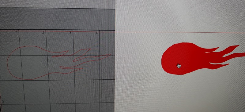 in the next step I need to design my robot arm. As you see in the concept I need to design several parts. The first stage is the base of the robot arm. See the design below: At the top of the first servo the second stage is installed. As you see I´m able to use always the same frame for the servos. As I tested before the servos fits perfectly in this frame so there are no additional screws or glue needed. The next stage is the first part of the real arm. At the end you are able to install the third servo. Especially this part could be used more than one time to get more degrees of freedom. The final stage contains the holding for the vacuum cup. The following part is needed to direct the vacuum flexible tube to avoid folding. Additional to the 3d printed parts I designed a simple box to keep the electrical parts in it. Here I used peters box generator and added the necessary holes. See here the finished box cut out of black acryl. The robot arm could be added on top to get a fix standing. In addition to the mechanical parts I wanted to add some optical features. So I designed some super cool flames with my digital sketchbook. In the next step I prepared the file to cut it in vinyl. See here our vinyl cutter doing his job. I also added some “LH” tags to show the individuality of this project.