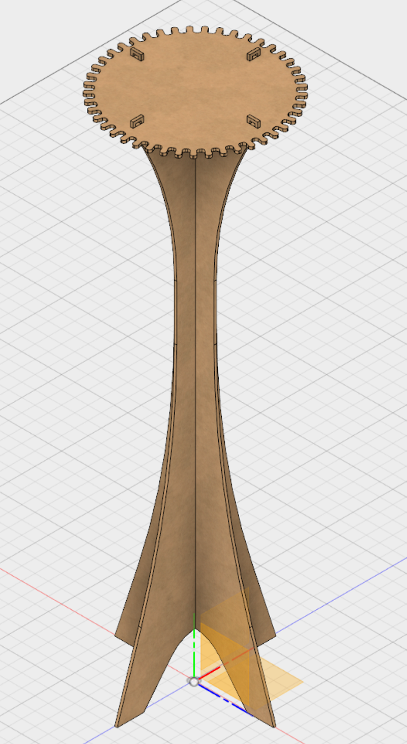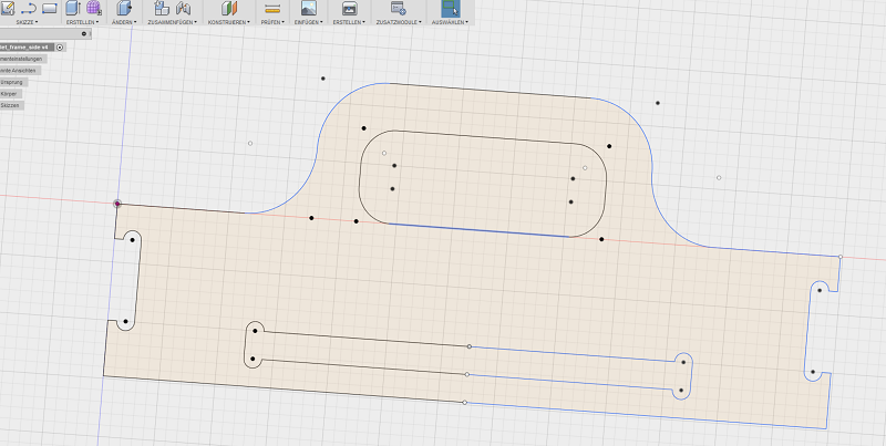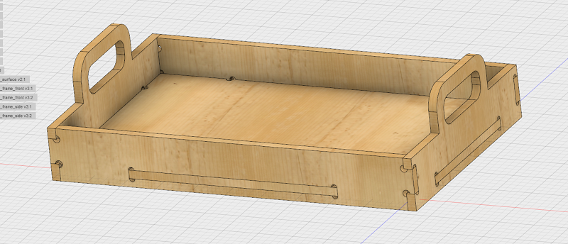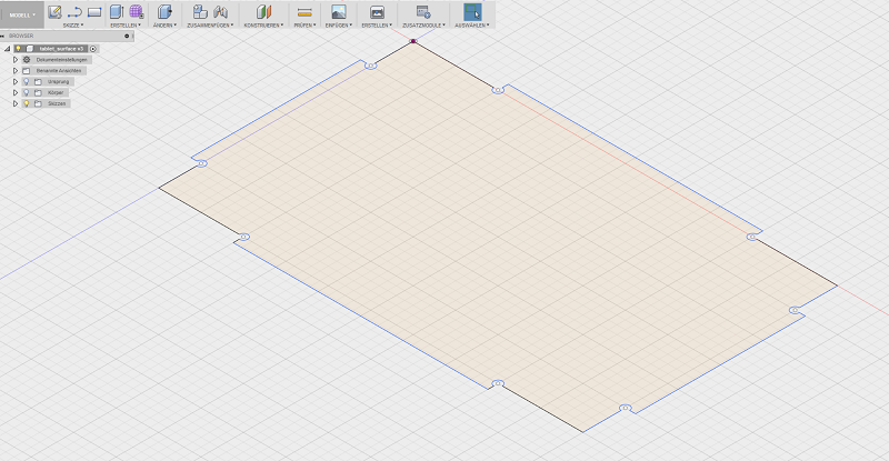 I used Fusion 360 to design my tablet. I explanied the working process of fusion in the Computer-Aided Design - Week. I also used the parametric design, because I have a lot of equal vaules. So I tried to design a huge Press-Fit system. So I had to insert the thickness of my planned woodplate and the diameter of the cutting bit in my design. See the single design parts of my tablet below.