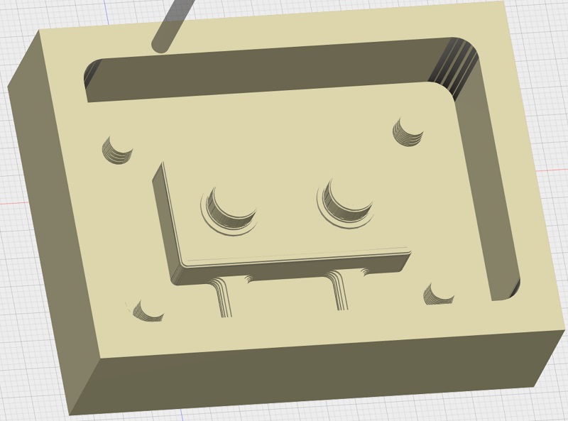 For the finishing I added a new 3mm tool and chose the “contour” process. This process allows to optimize the cliffy surfaces of my model and removes the missing corners. See the toolpath below: